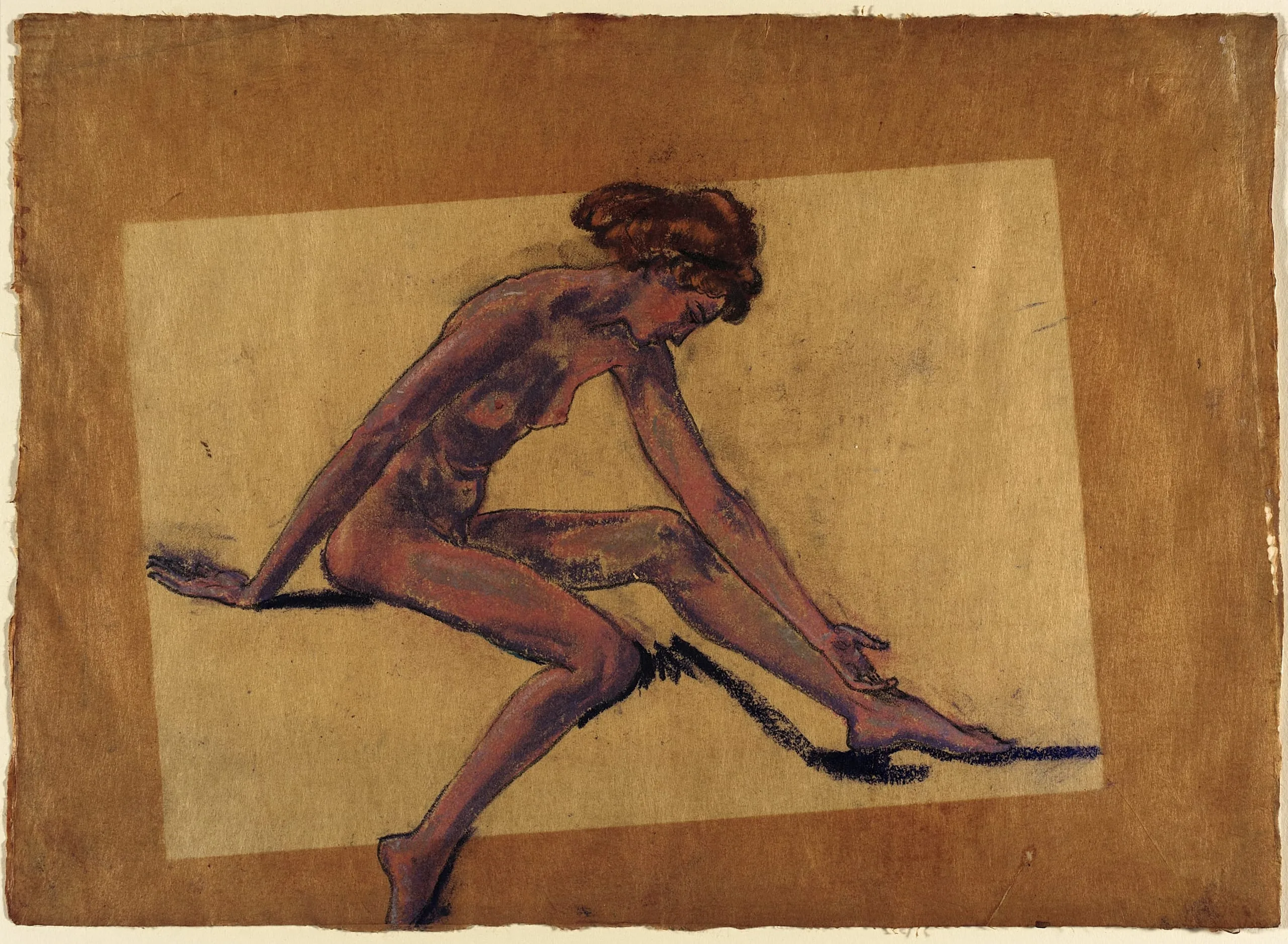 Seated Female Nude in Profile, Bending Forward