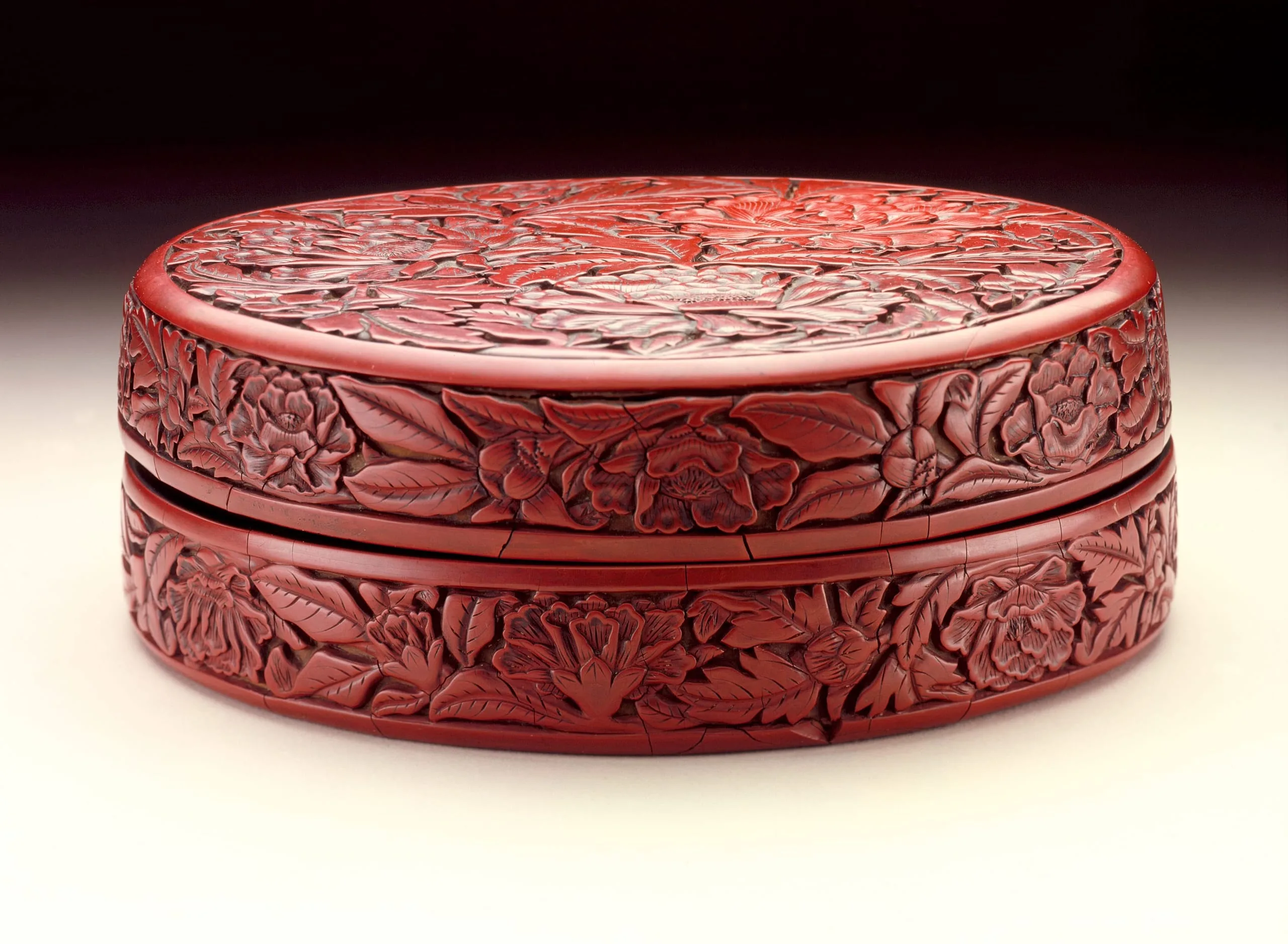 - Carved red lacquer on wood core