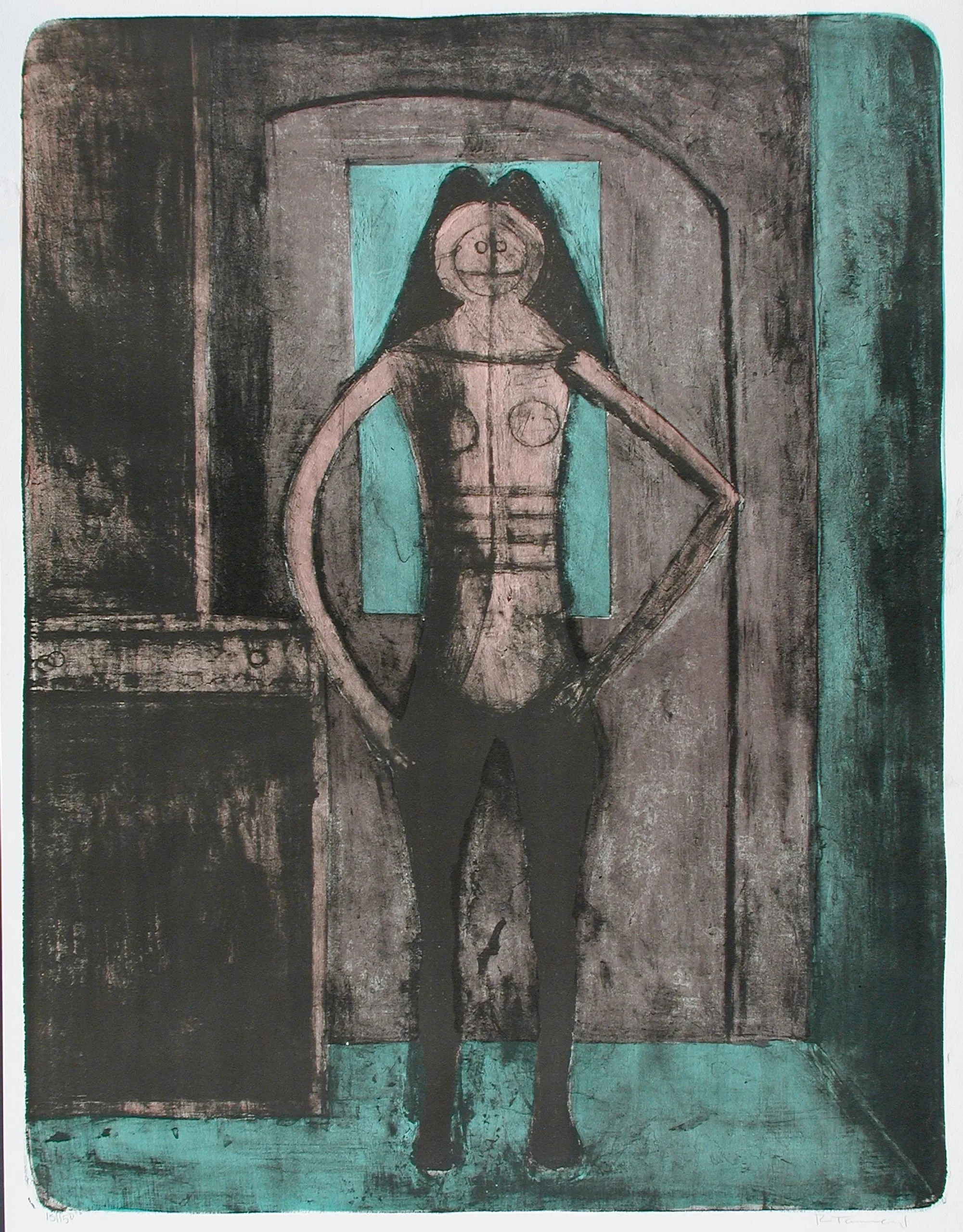 Part of the portfolio Mujeres (Women), Woman with Black Stockings (Femme au collant noir/Mujer con mallas negras) was printed by the Atelier Desjobert in Paris and published by Touchstone Publishers in New York.