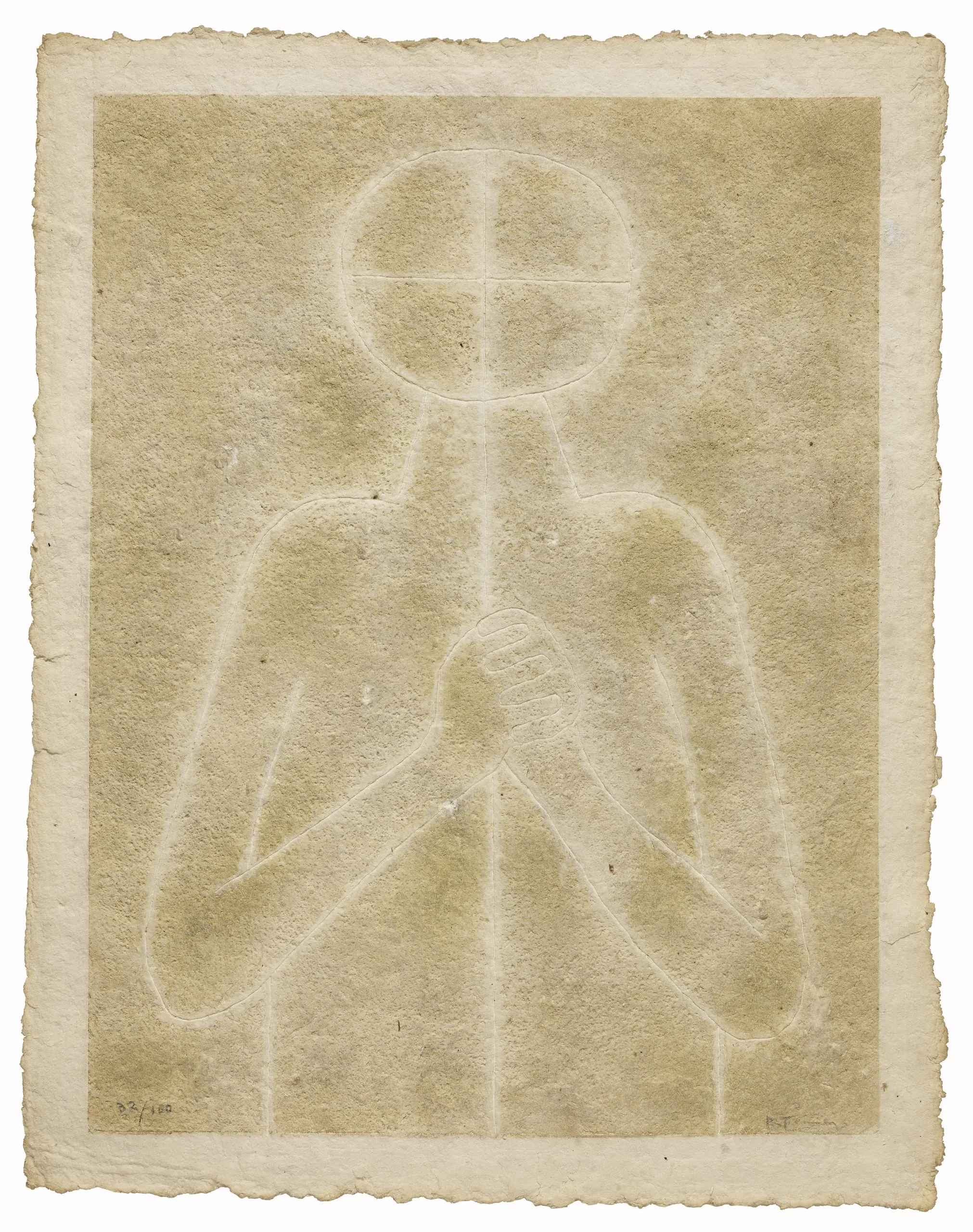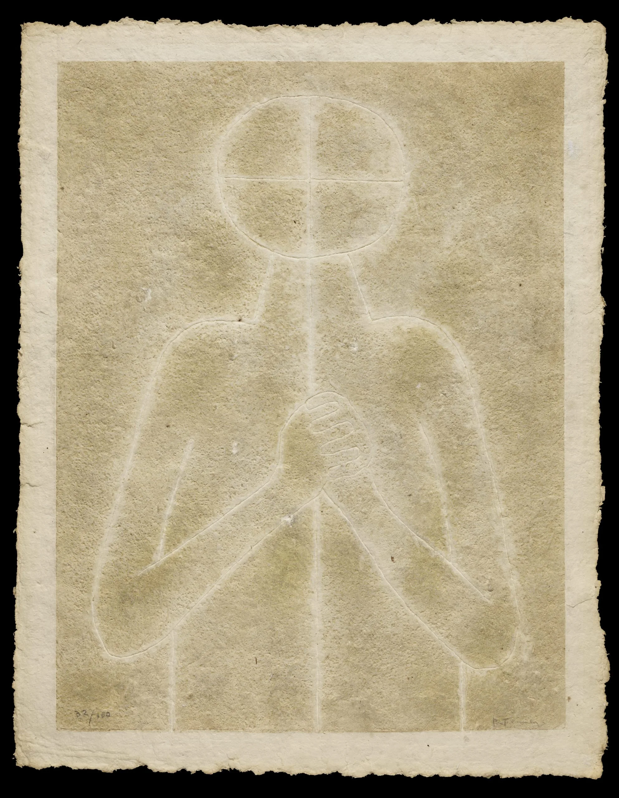 White Torso is one of the earliest examples of a Mixografía print on handmade paper. Wet paper pulp was pressed onto an inked plate and then passed through the printing press. This innovative approach not only provided a stronger paper, but also the possibility of creating works of variable size and thickness—and the groundbreaking ability to produce a three-dimensional print. The rough, uncut edges of the paper, extending beyond the printed image, evidence this method of making the paper and impression simultaneously.