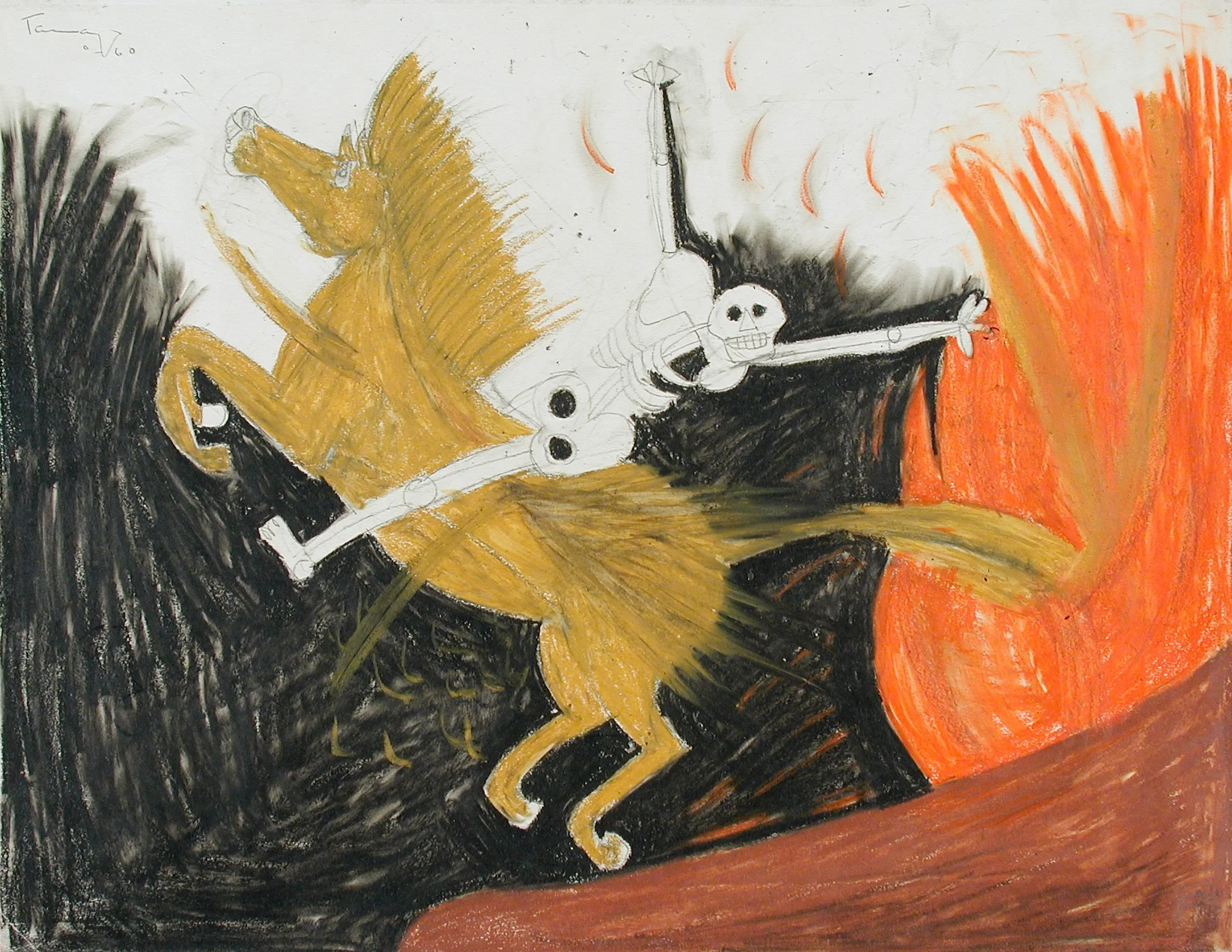 Signed and dated 1960 in the upper left corner, this drawing relates to a series of 15 lithographs that Rufino Tamayo created to illustrate Apocalypse de saint Jean (Apocalypse of Saint John), a 1959 publication of the text originally written by Isaac-Louis Lemaistre de Sacy in 1672.