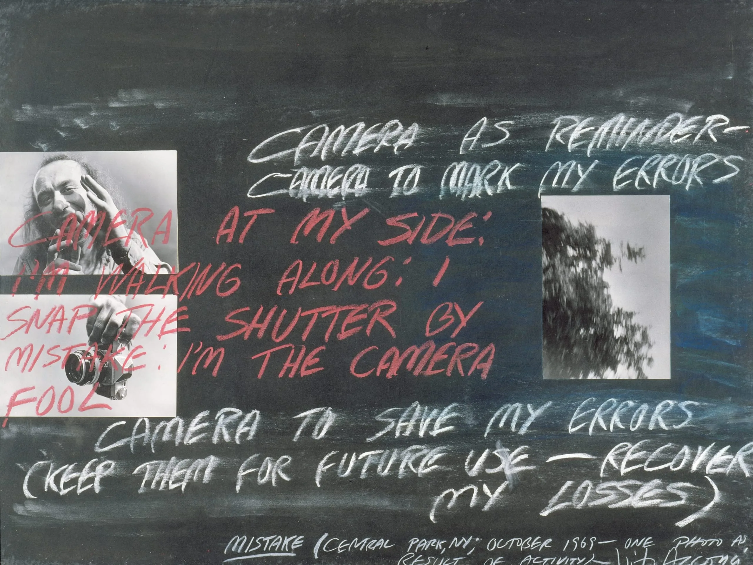 - 3 gelatin-silver prints mounted on black board with chalk text