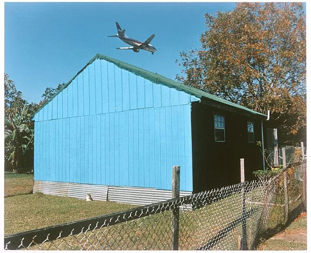 - Jet Over Blue and Black House