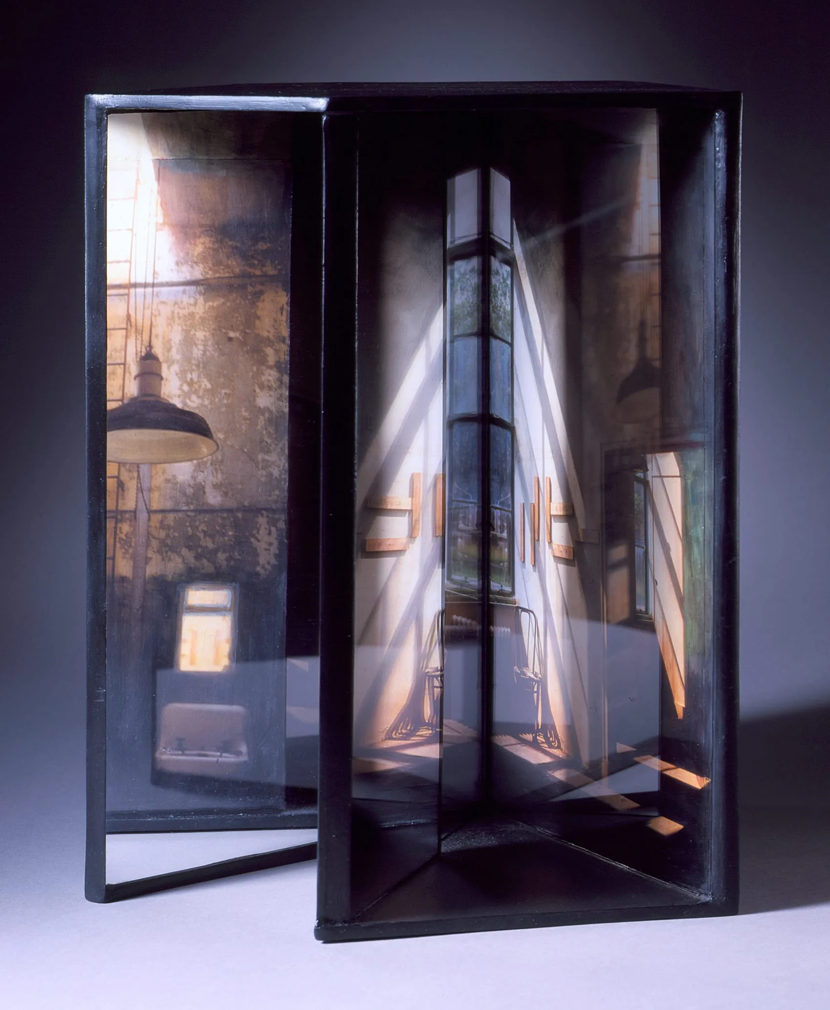 - Mixed media wall-mounted work with color electrophotographic print, plexi mirrors, and acrylic