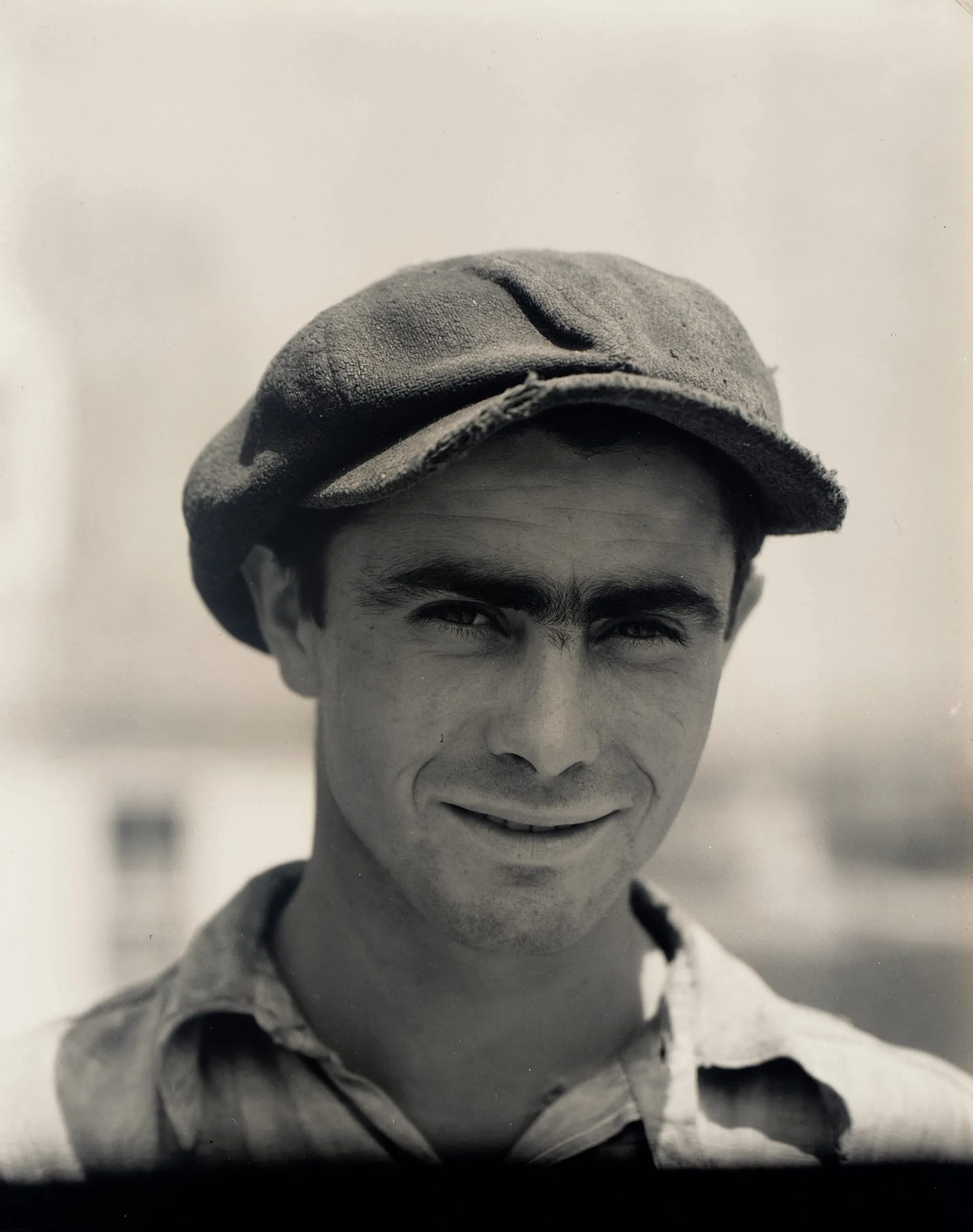 The construction worker's unwavering gaze and the position of the camera at eye level imply his active participation and equitable relationship with the photographer. Walker Evans has widened the aperture to bring the subject into focus while blurring the background. The subject's expression is one of openness, and his direct eye contact implies honesty and industriousness.