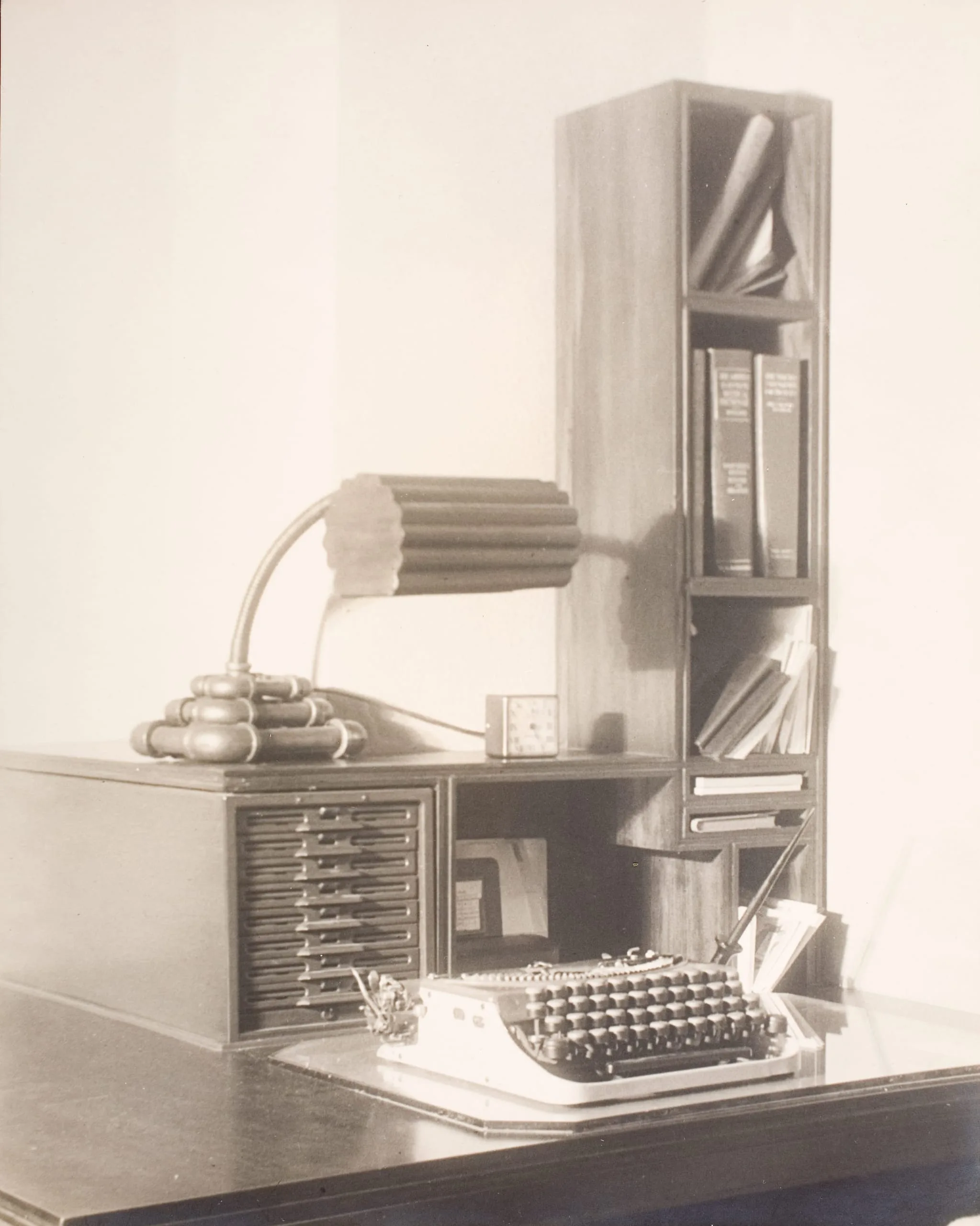 [Typewriter on desk]