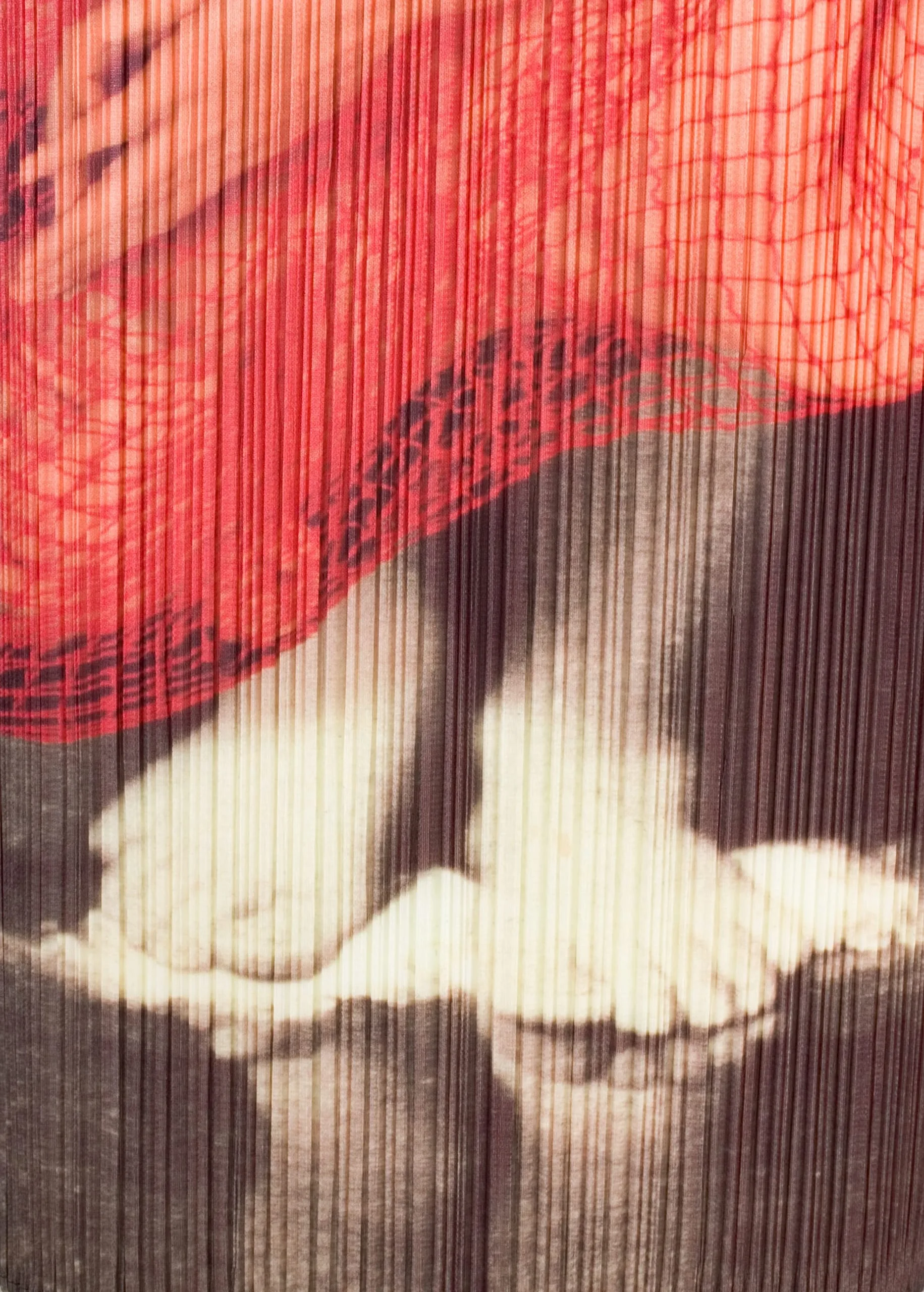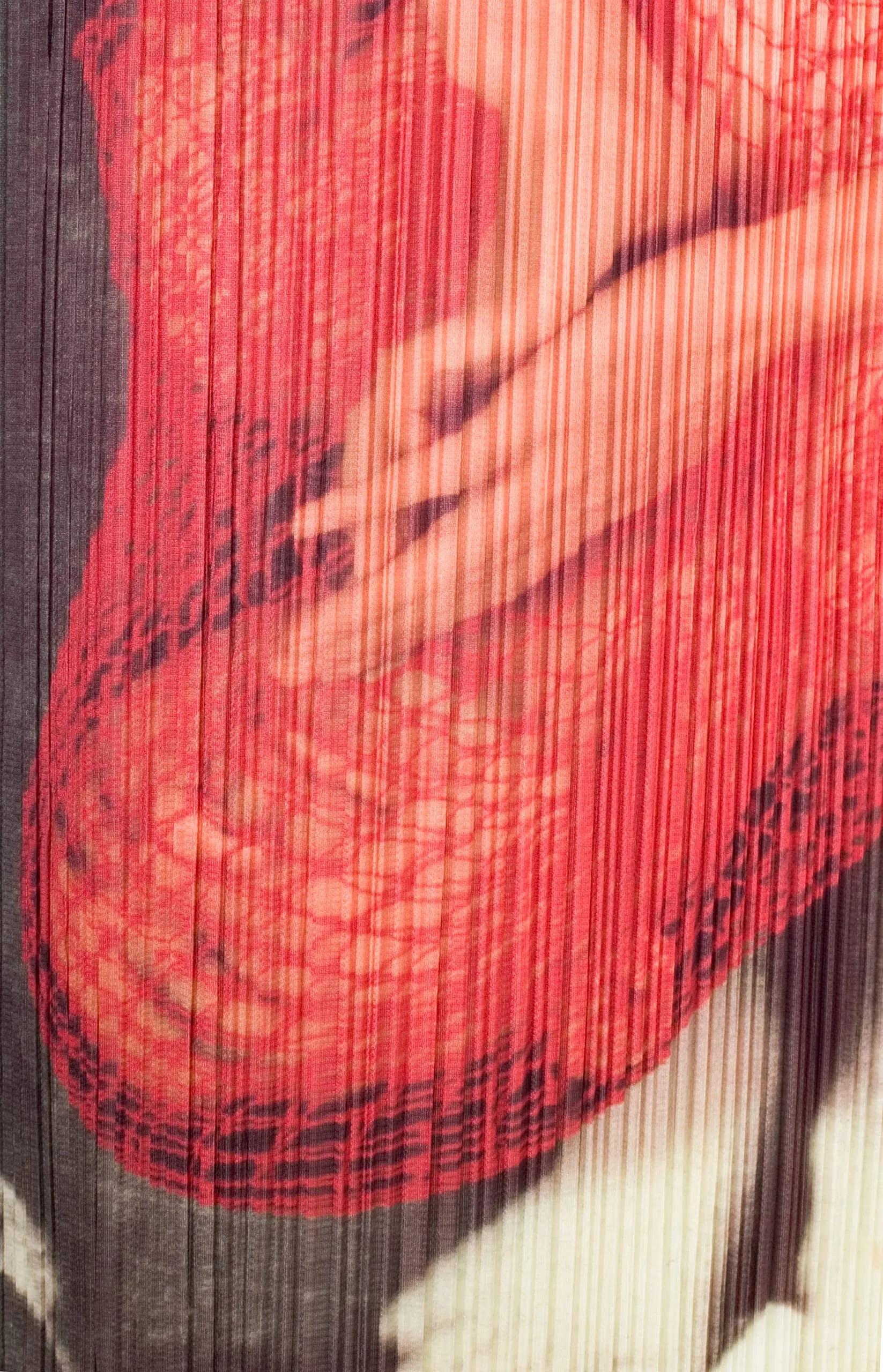 - Polyester knit, printed, with heat set pleats