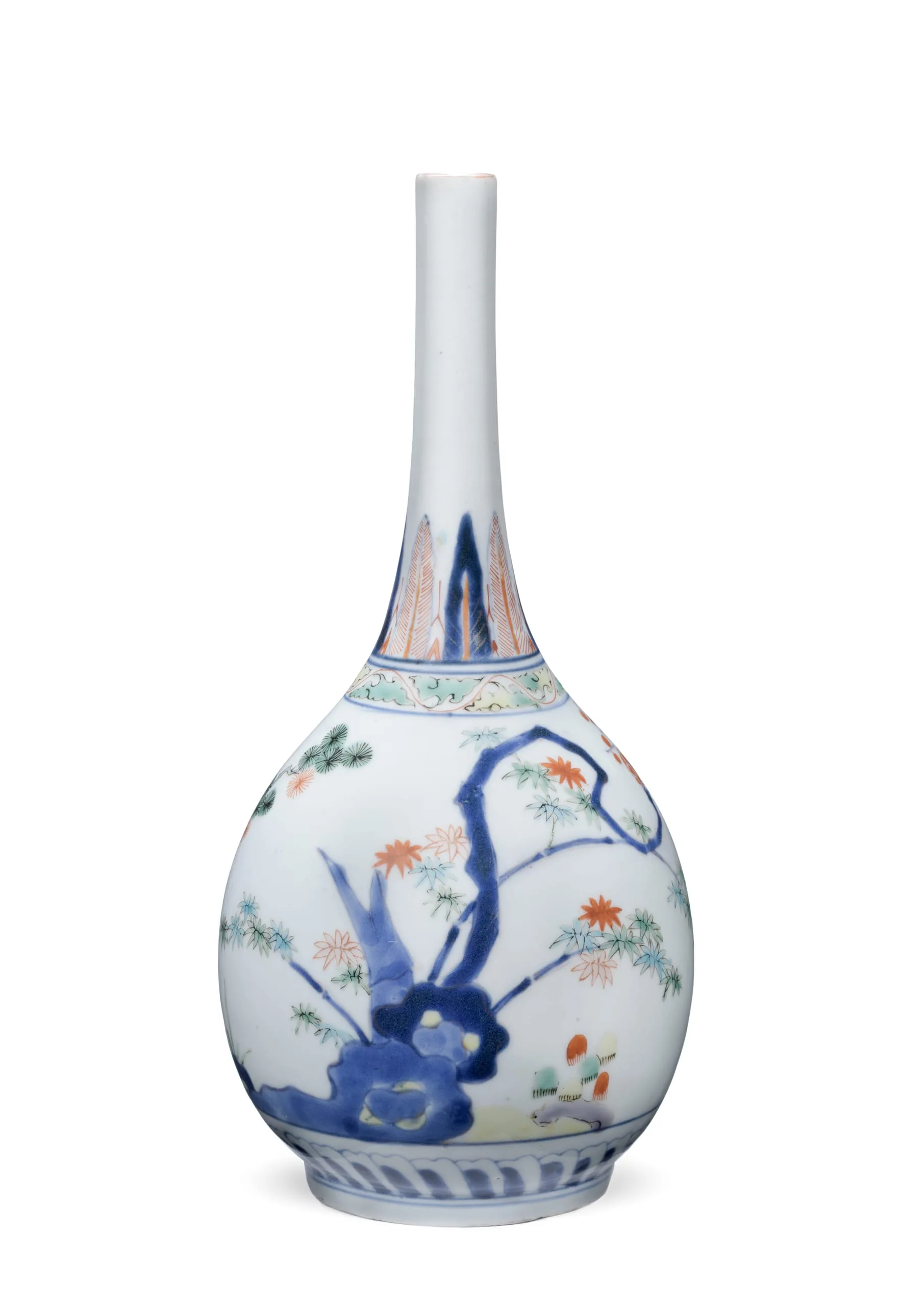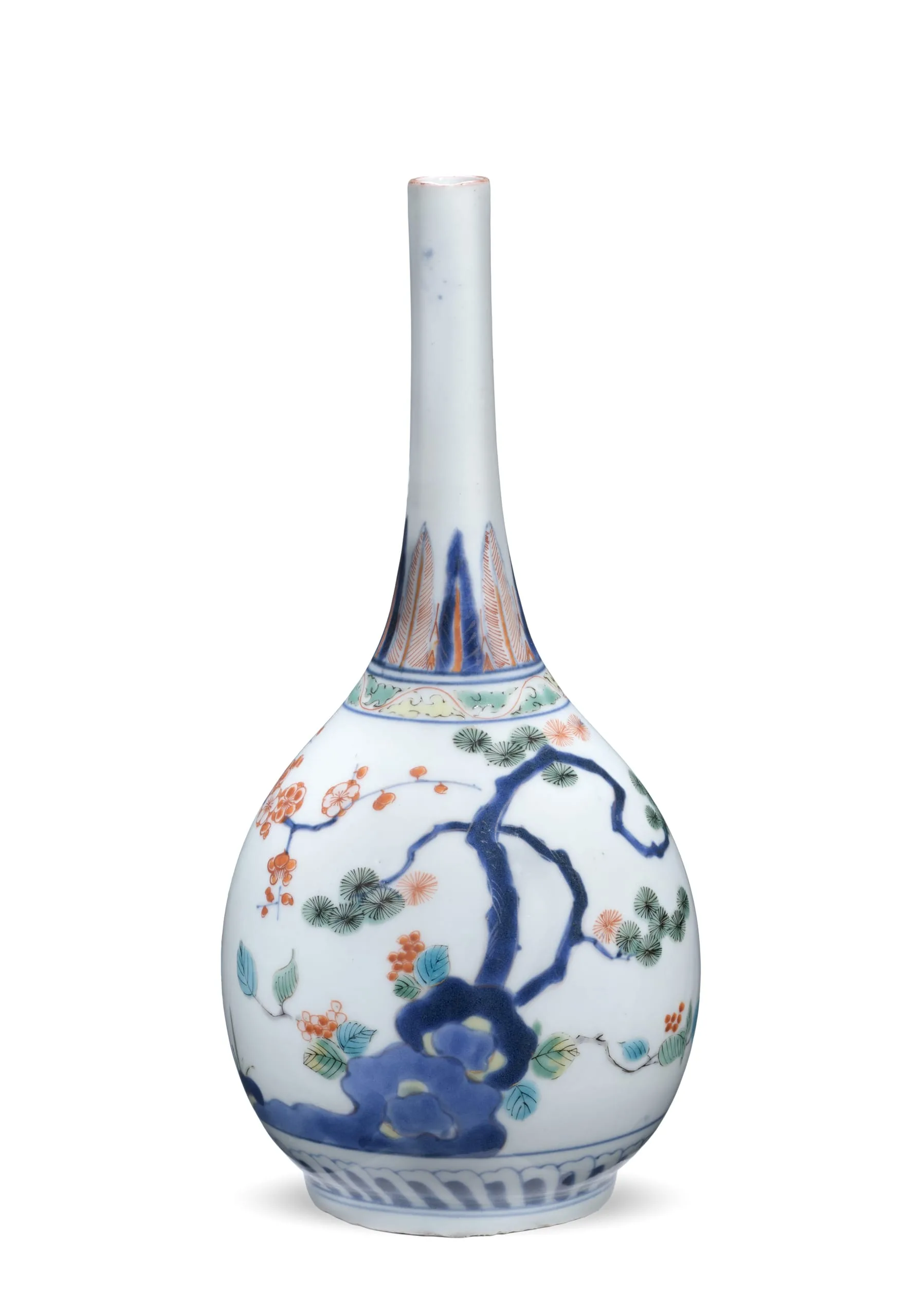 - Arita ware, Kakiemon style; porcelain with blue underglaze and enamel overglaze