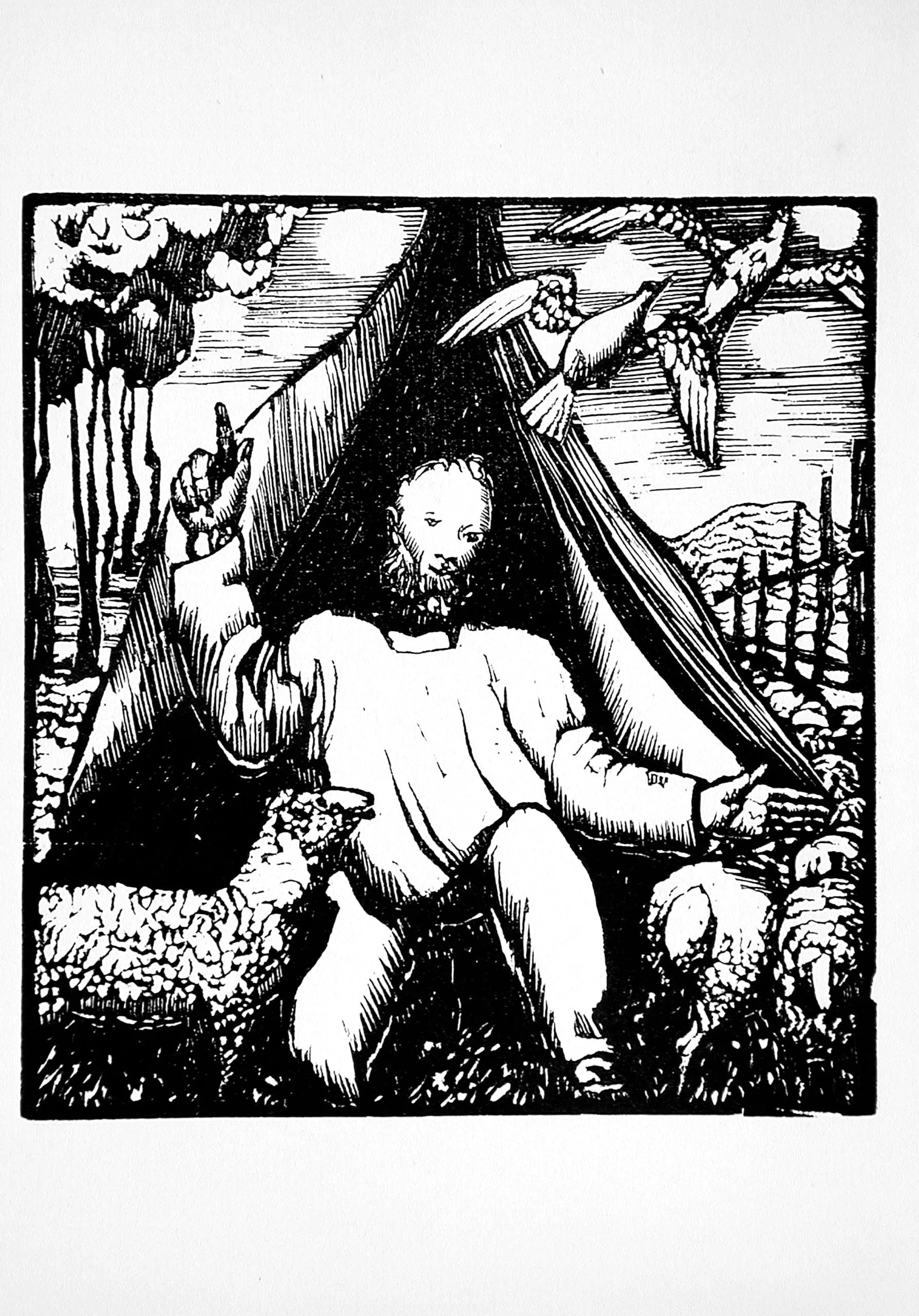 - Woodcut on laid paper