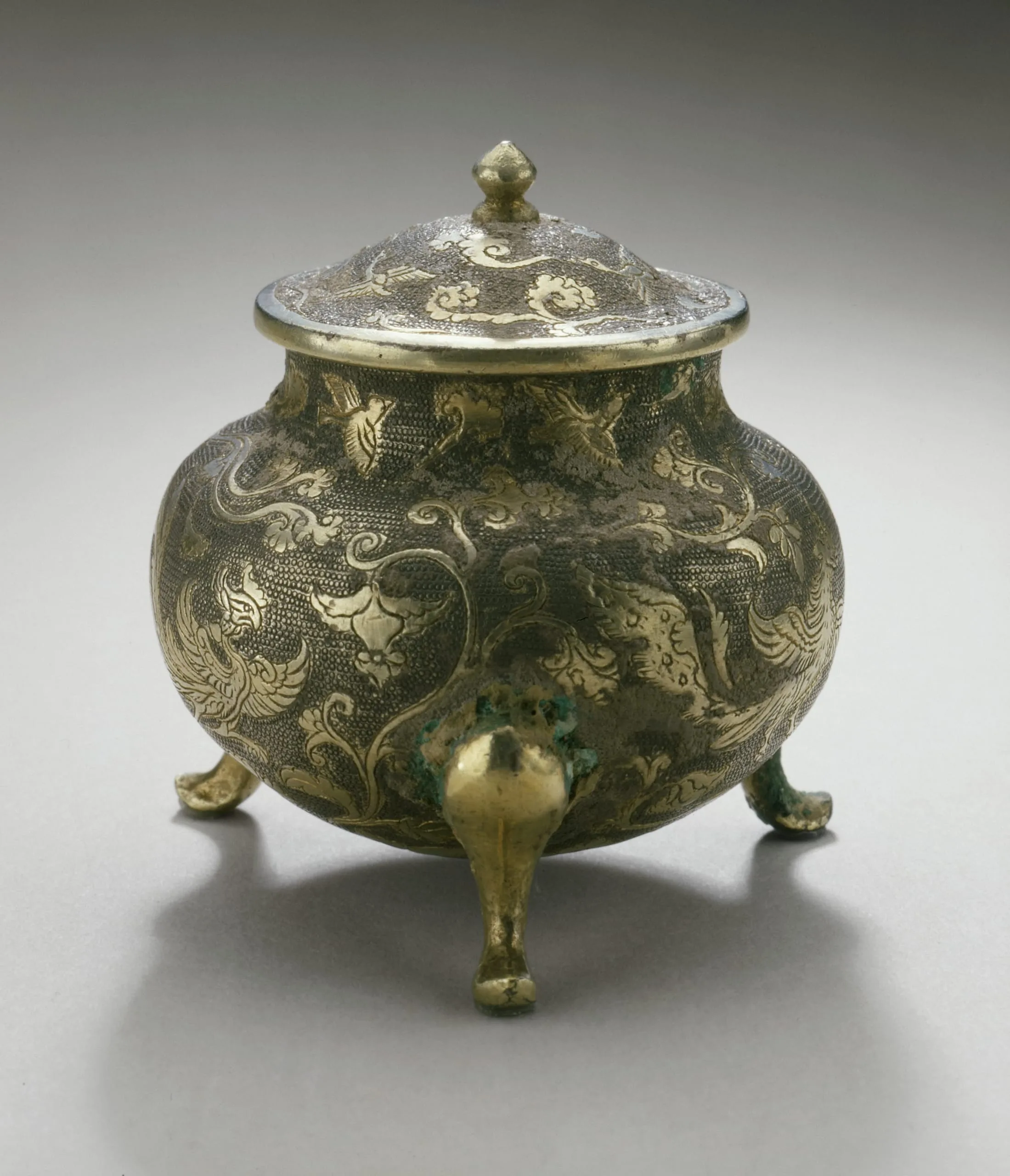 - Lidded Tripod Jar with Flowers, Birds, and Clouds