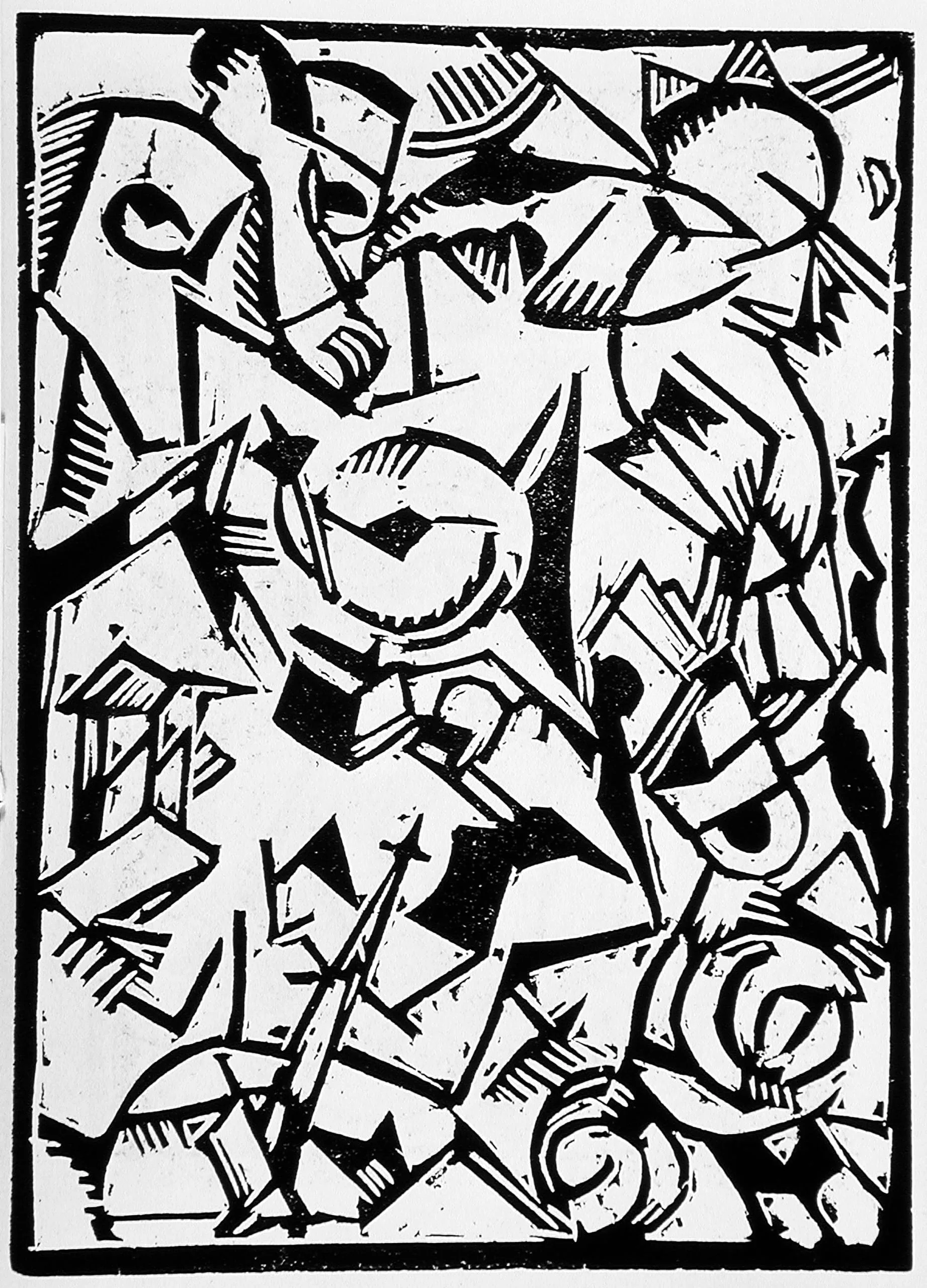 - Printed material with eight linocuts on wove paper plus linocut on cover stock
