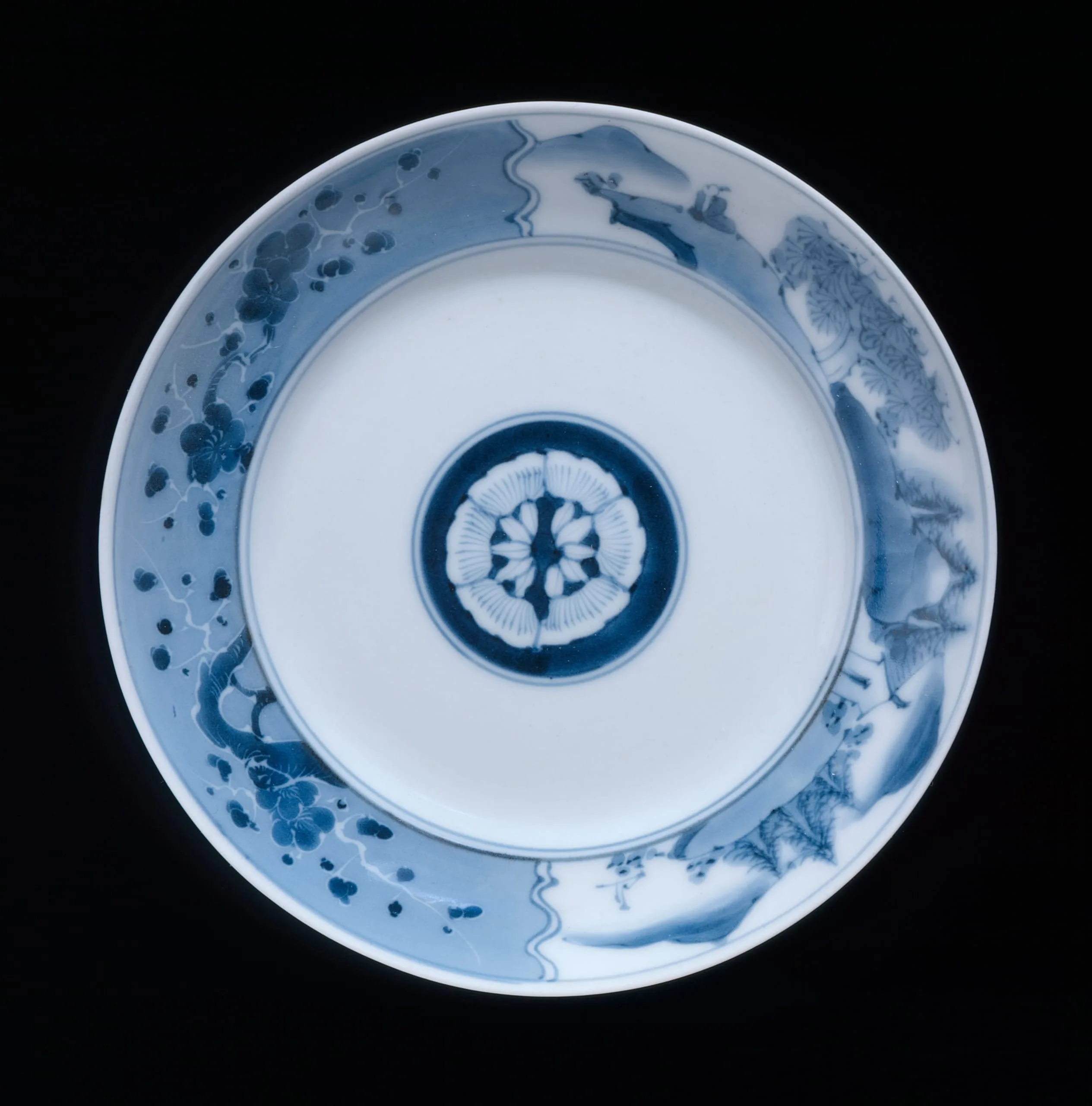 Dish with Plum Blossoms and Landscape Motifs