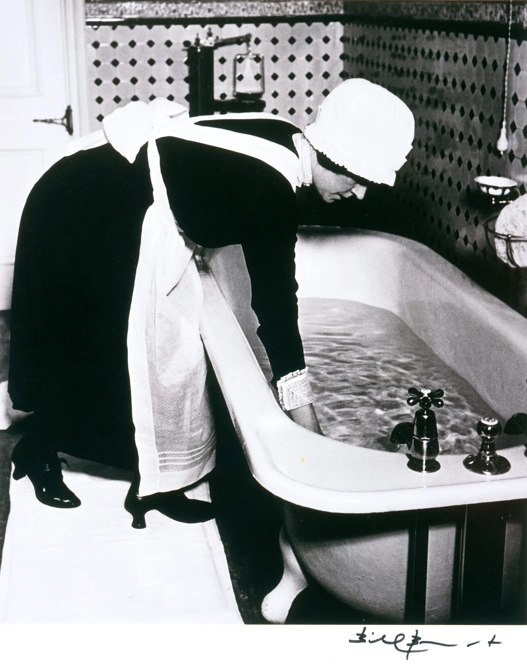 - Parlourmaid preparing a bath before dinner