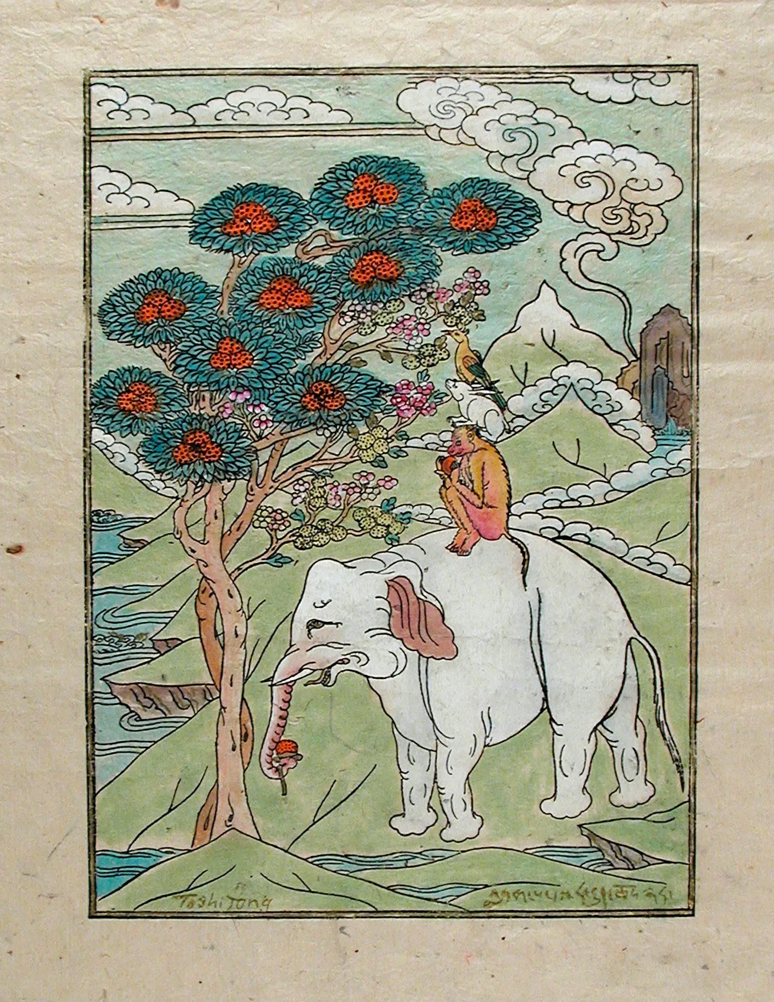 - Handcolored woodblock print on paper