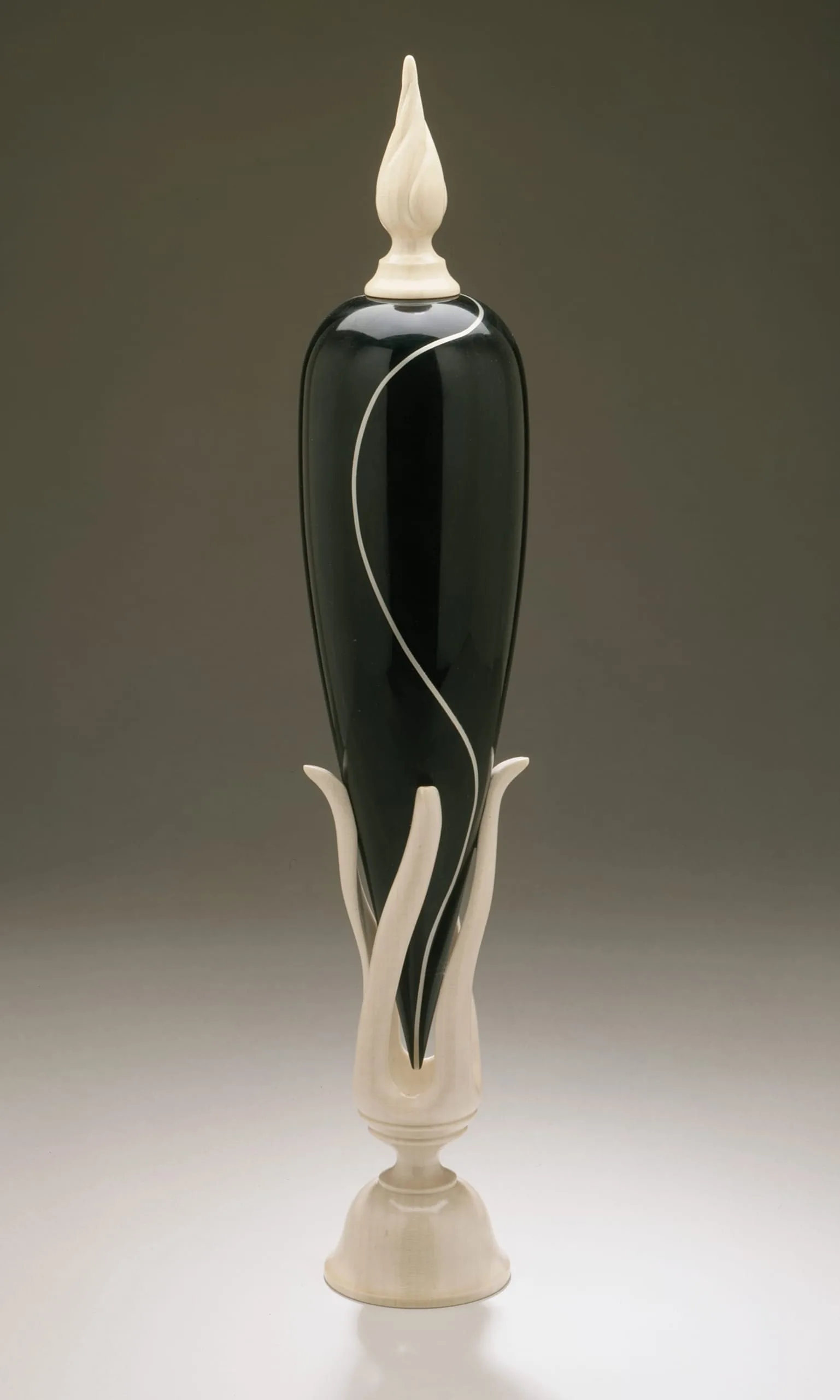 - a) Lid: 3 x 1 1/2 in. (7.62 x 3.81 cm); b) Vase: 11 7/8 x 2 3/4 in. (30.16 x 6.98 cm); Overall: 15 x 2 3/4 in. (38.1 x 6.98 cm)