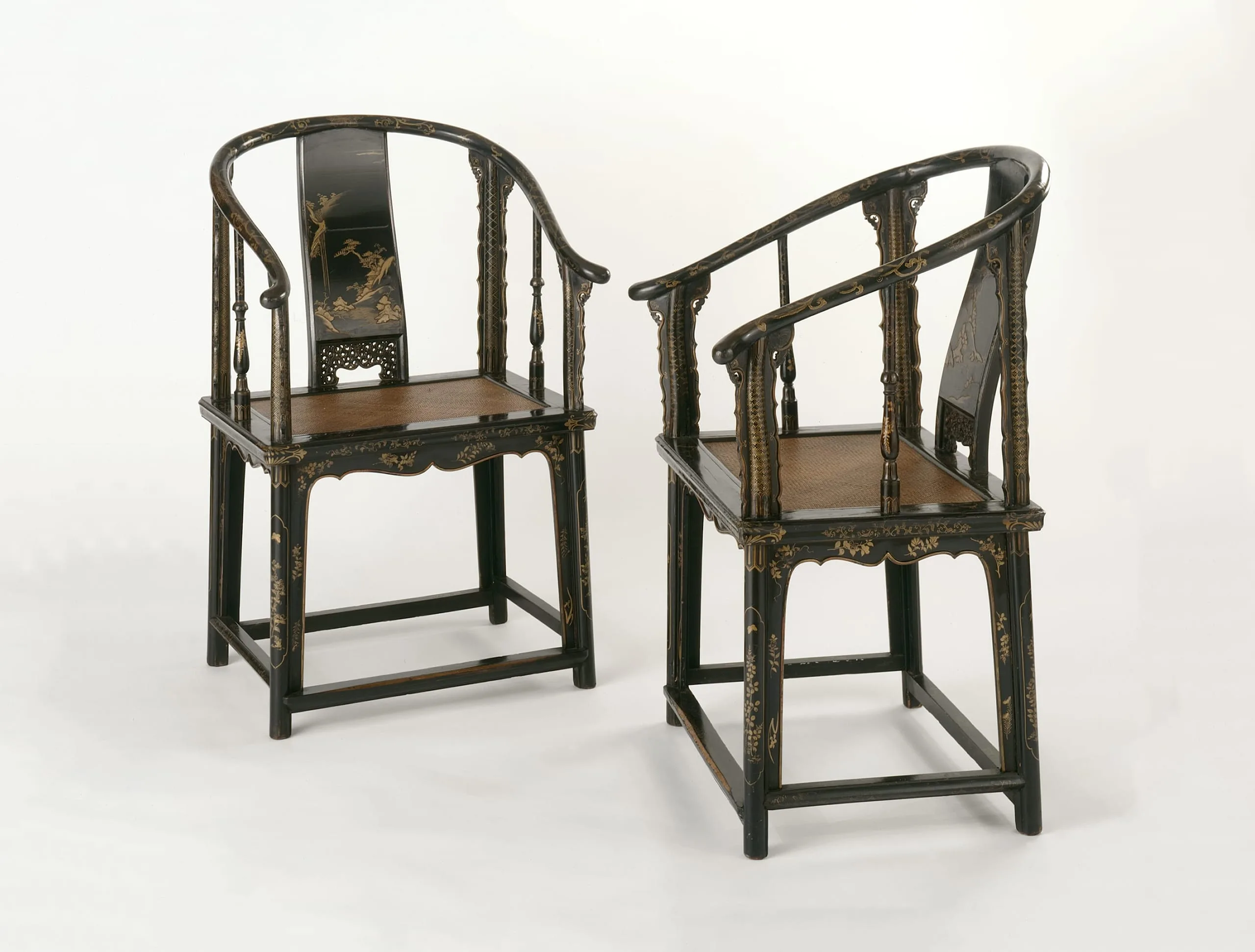 - Armchairs: early Qing Dynasty, circa 1644-1700; Inset back panels: Japan, early Edo Period