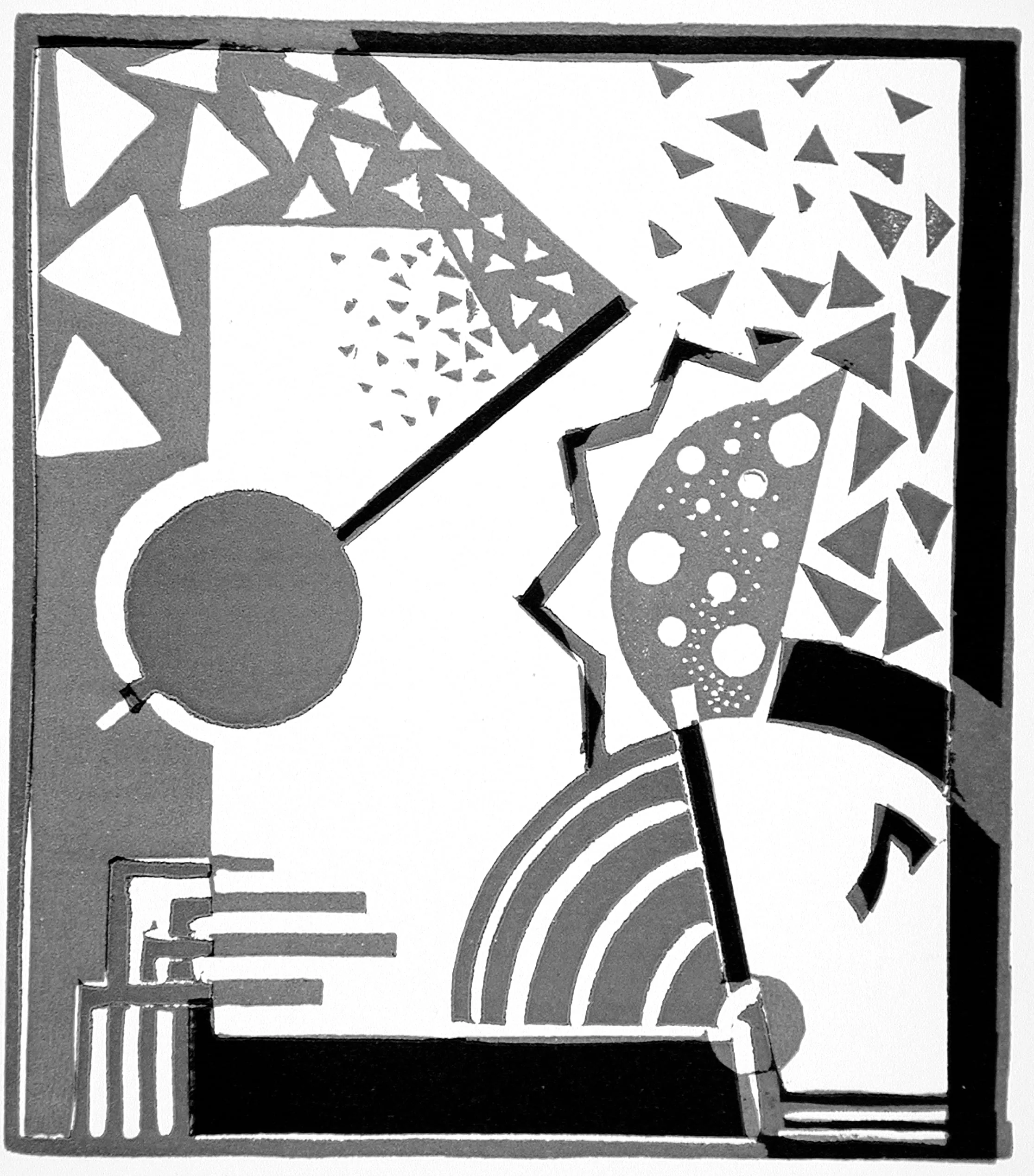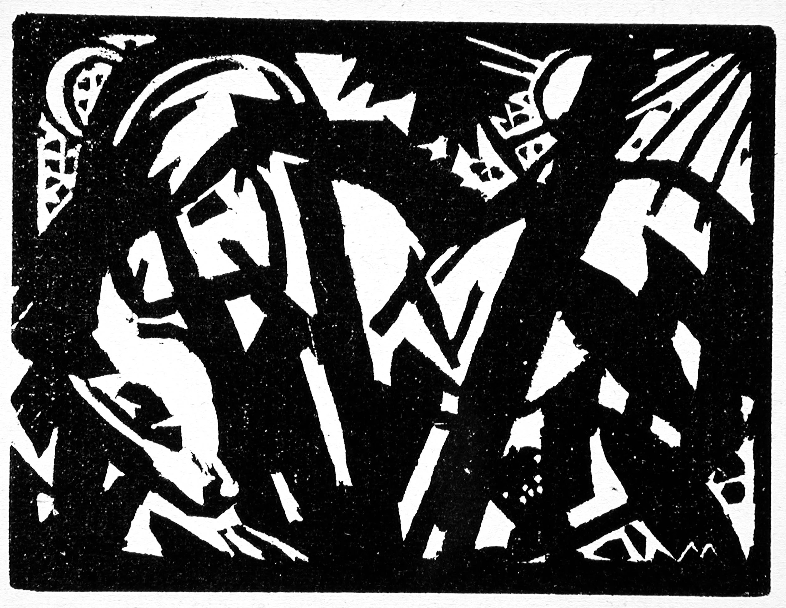 - Printed material with thirteen linocuts and four woodcuts on wove paper