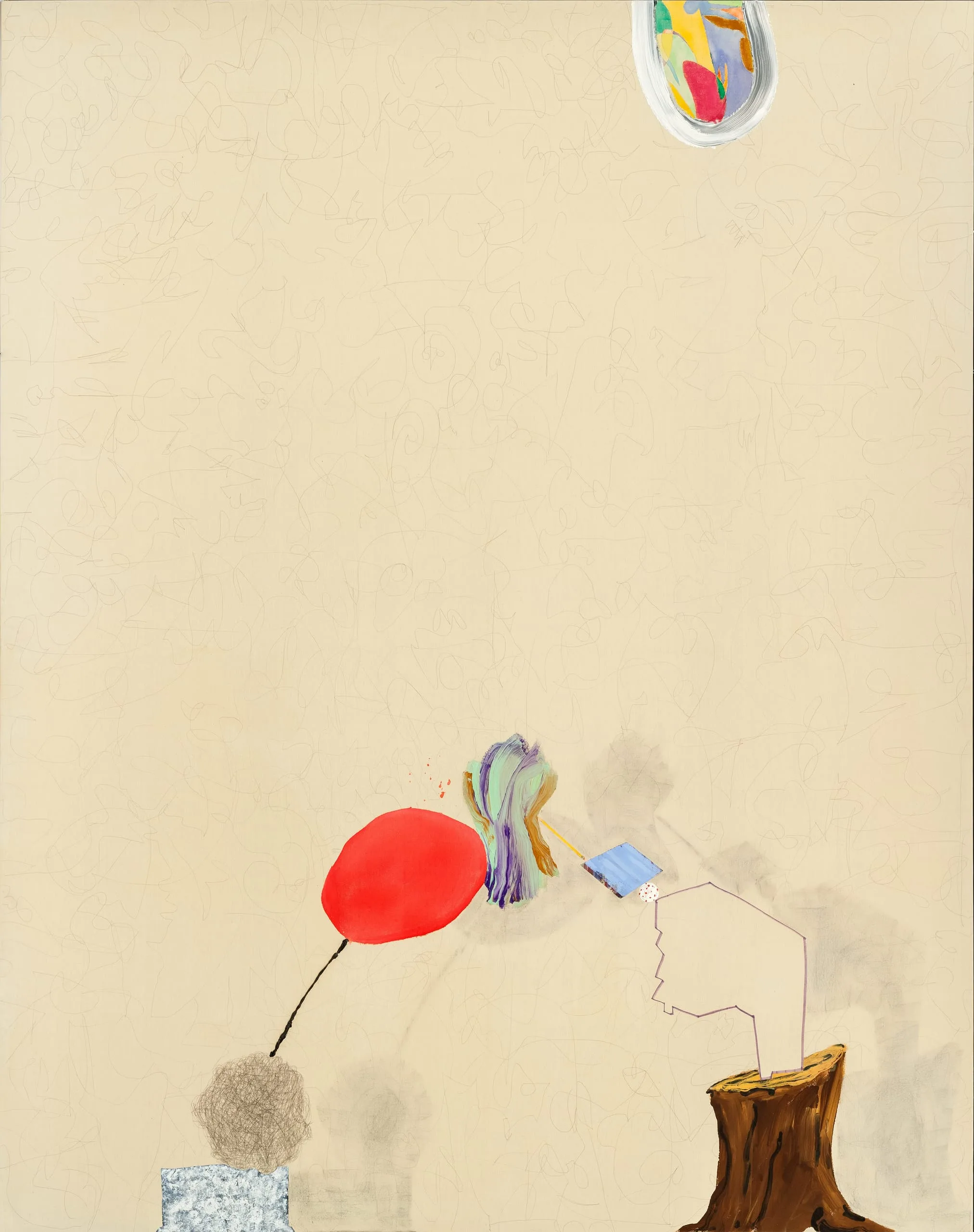 - Acrylic, ink, and charcoal on canvas