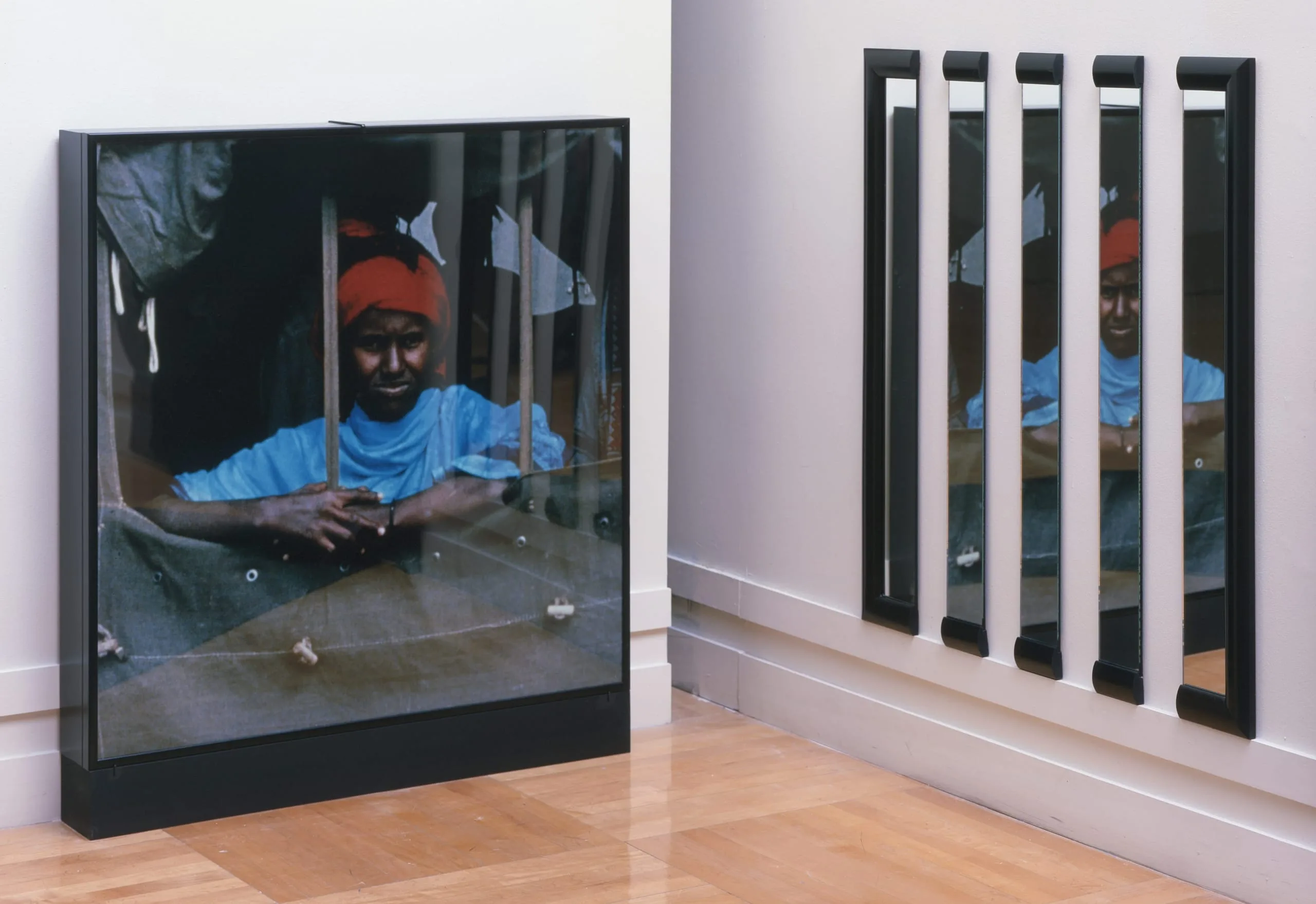 - a) Lightbox: 41 1/4 x 40 1/2 x 5 1/4 in. (104.77 x 102.87 x 13.33 cm); b) Left mirror: 40 x 6 in. (101.6 x 15.2 cm); c-e) Center mirrors: 40 x 2 7/8 in. (101.6 x 7.3 cm); f) Right mirror: 40 x 6 in. (101.6 x 15.2 cm)