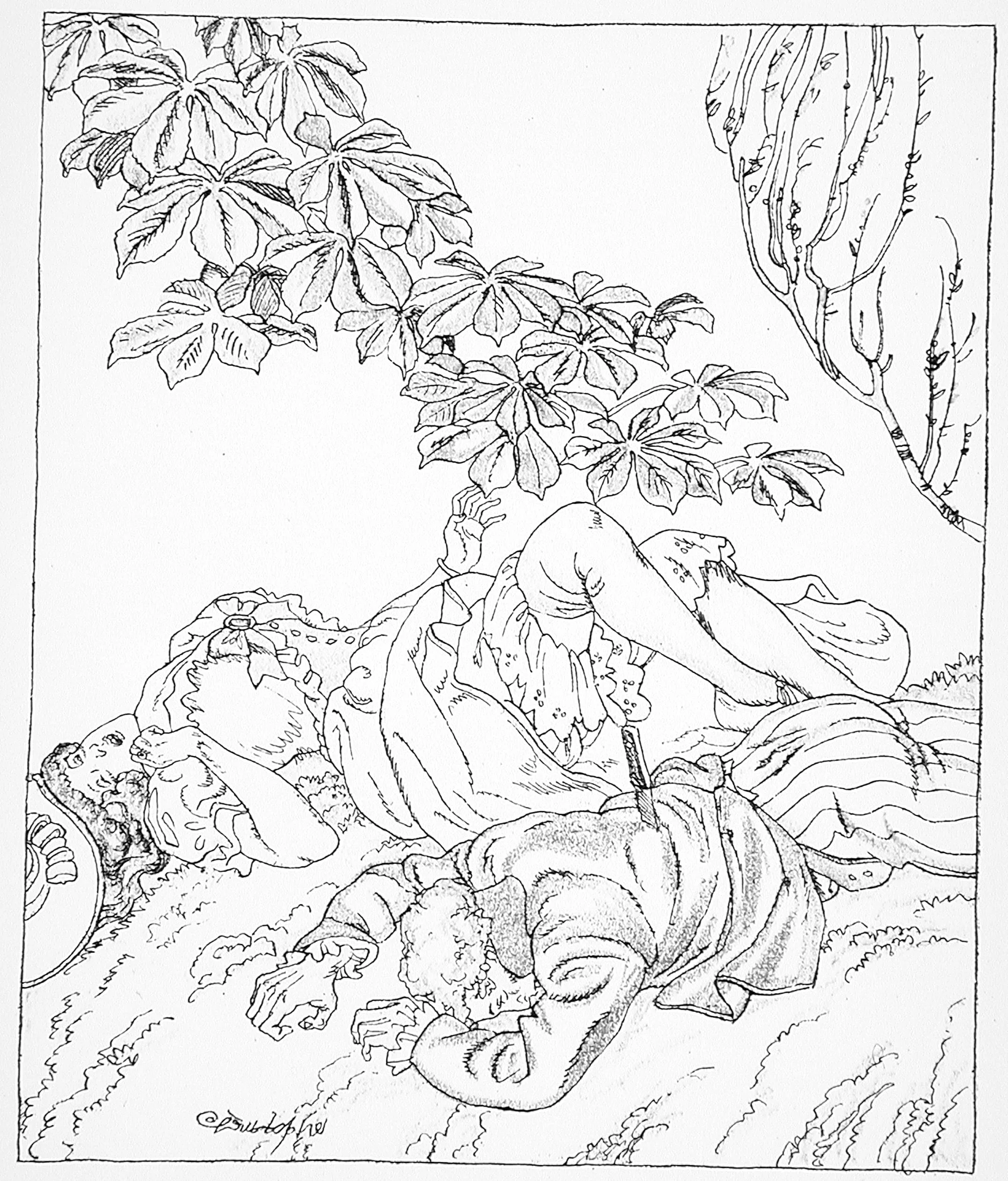- Lithograph printed black, green, gold, pink, and brown on laid paper