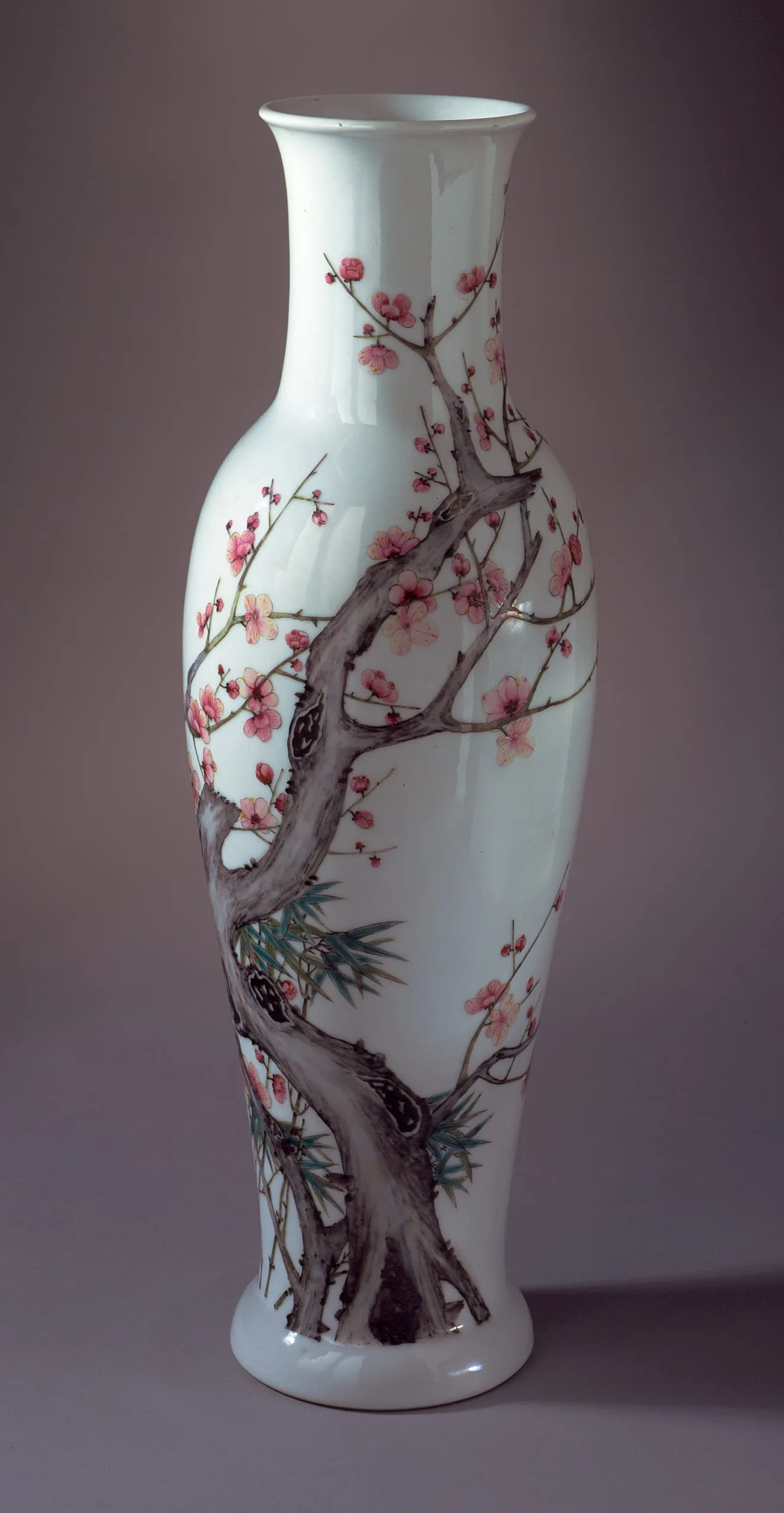 - Prunus Vase (Meiping) with Bamboo and Blossoming Plum Tree