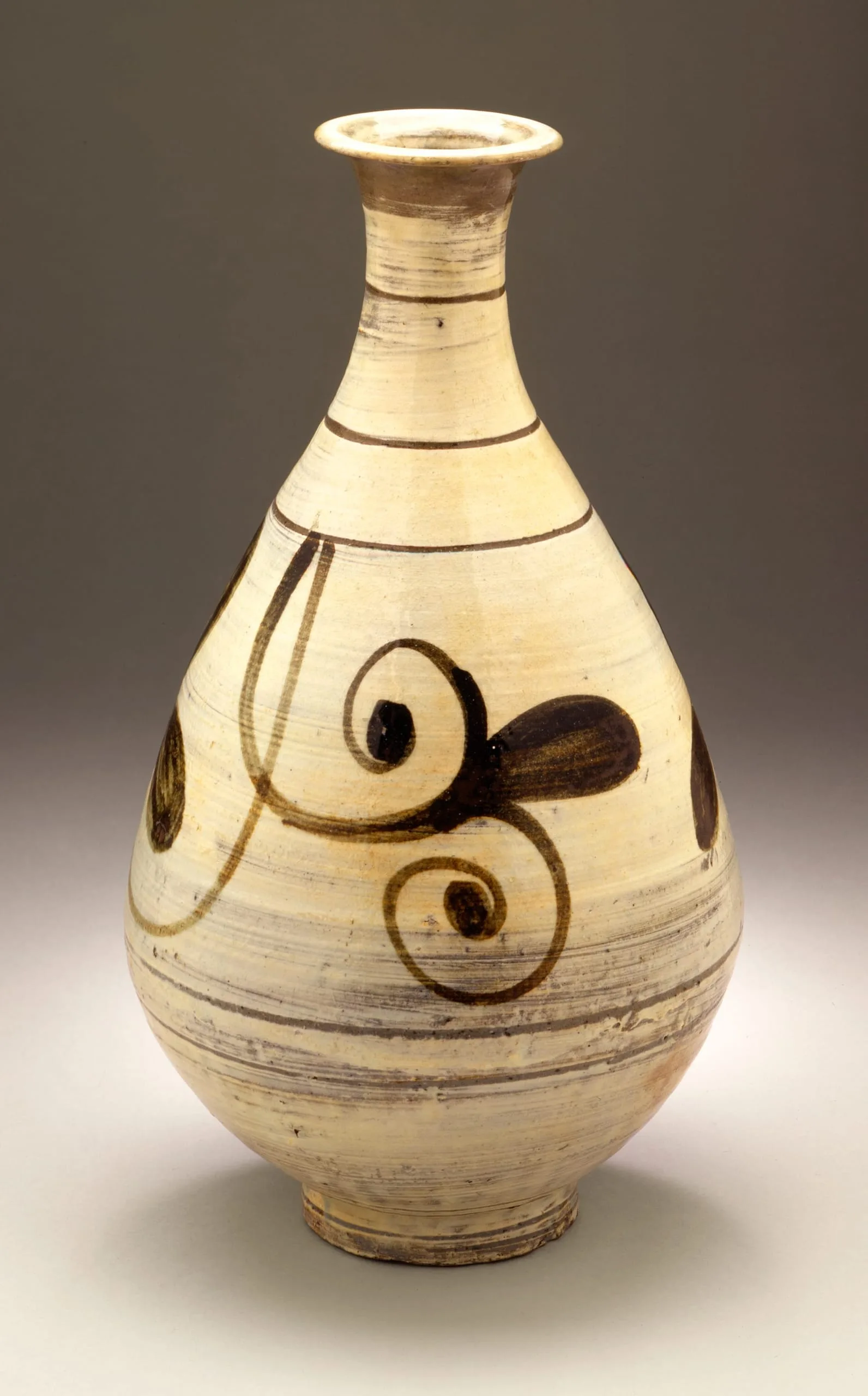 - Buncheong ware; Wheel-thrown stoneware with incised slip and brown painted decoration and pale green glaze