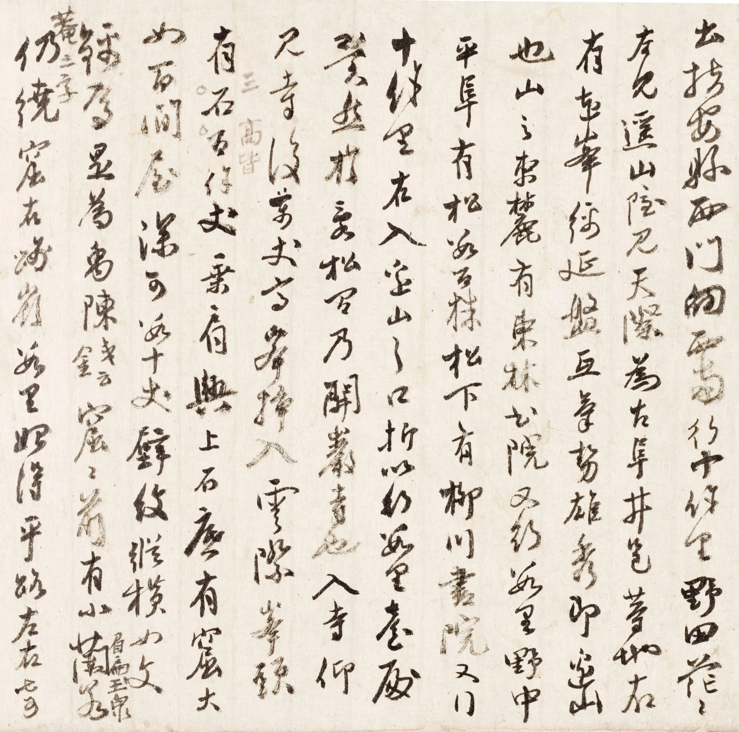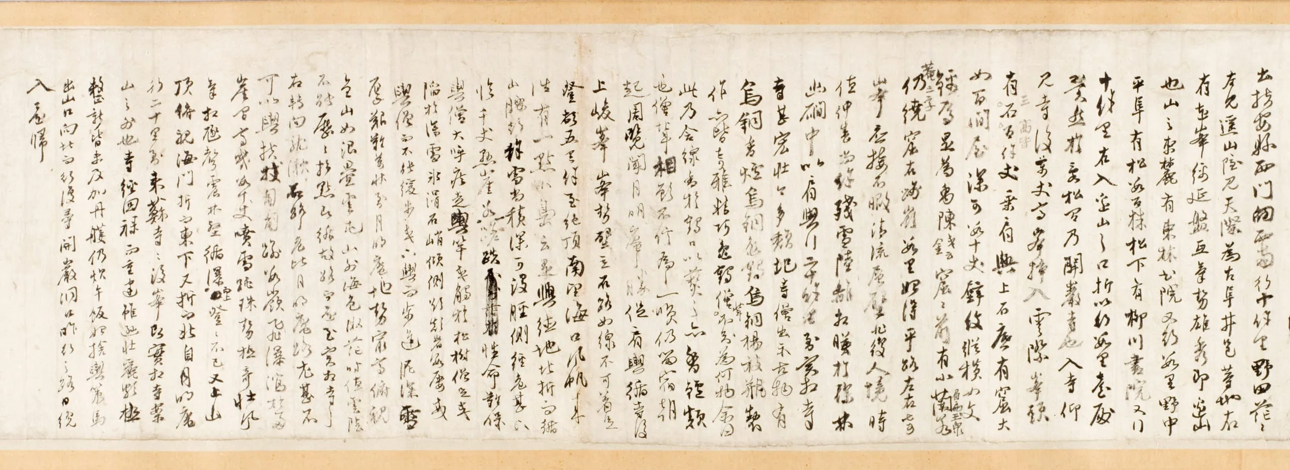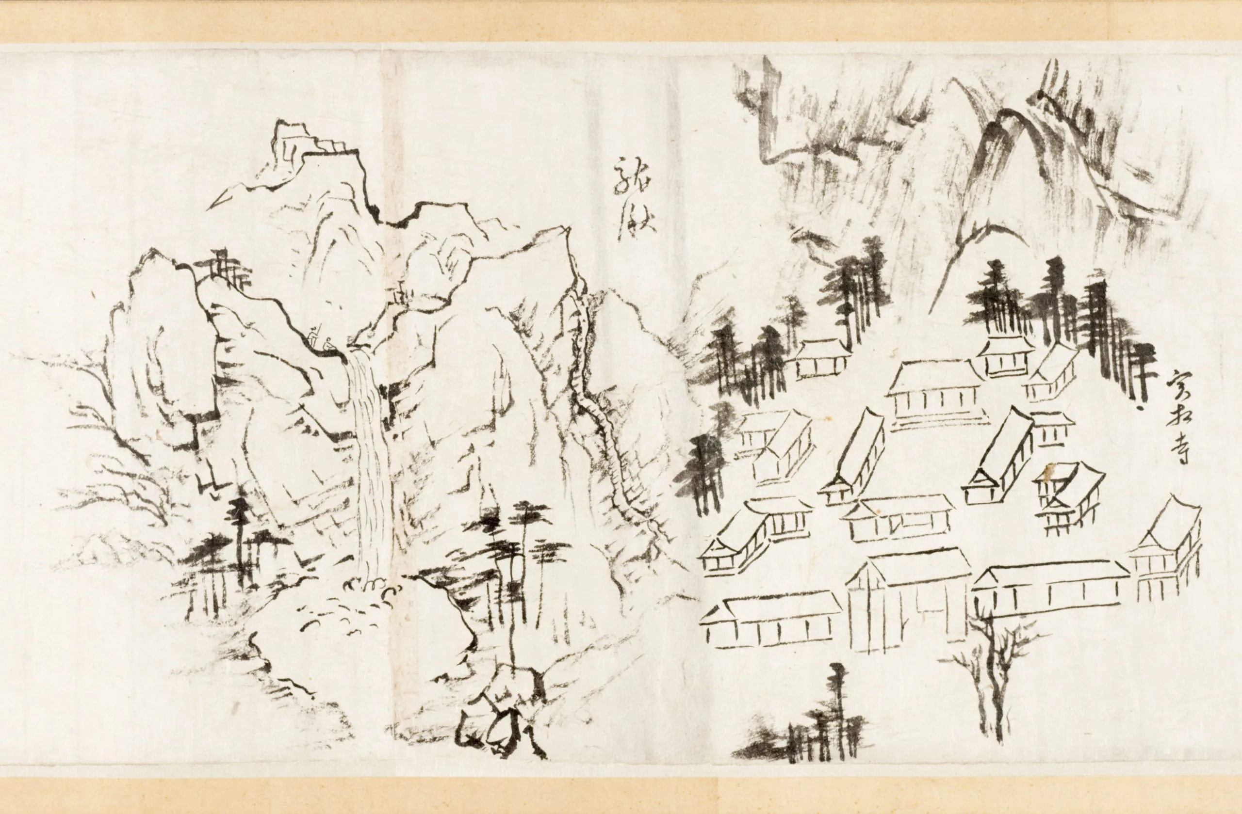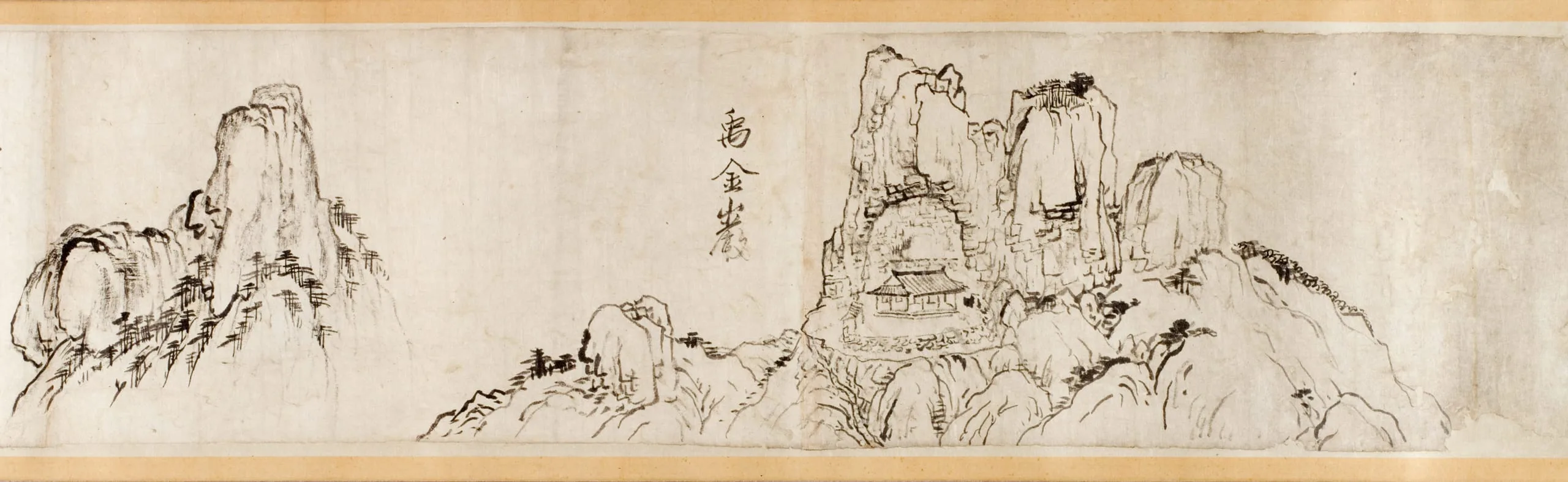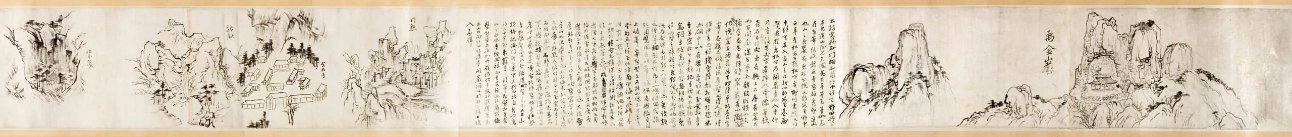 LACMA’s handscroll can be understood in the context of the artist’s passion to record his journeys visually. This handscroll has an interesting composition, because the artist inserted written descriptions of his travels between sketches of related scenes, suggesting that Gang might have made these sketches for a future painting.