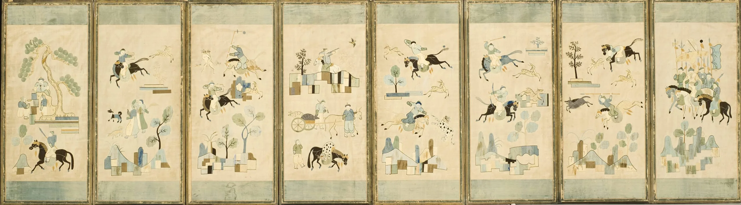 - Eight-panel screen, embroidery on silk