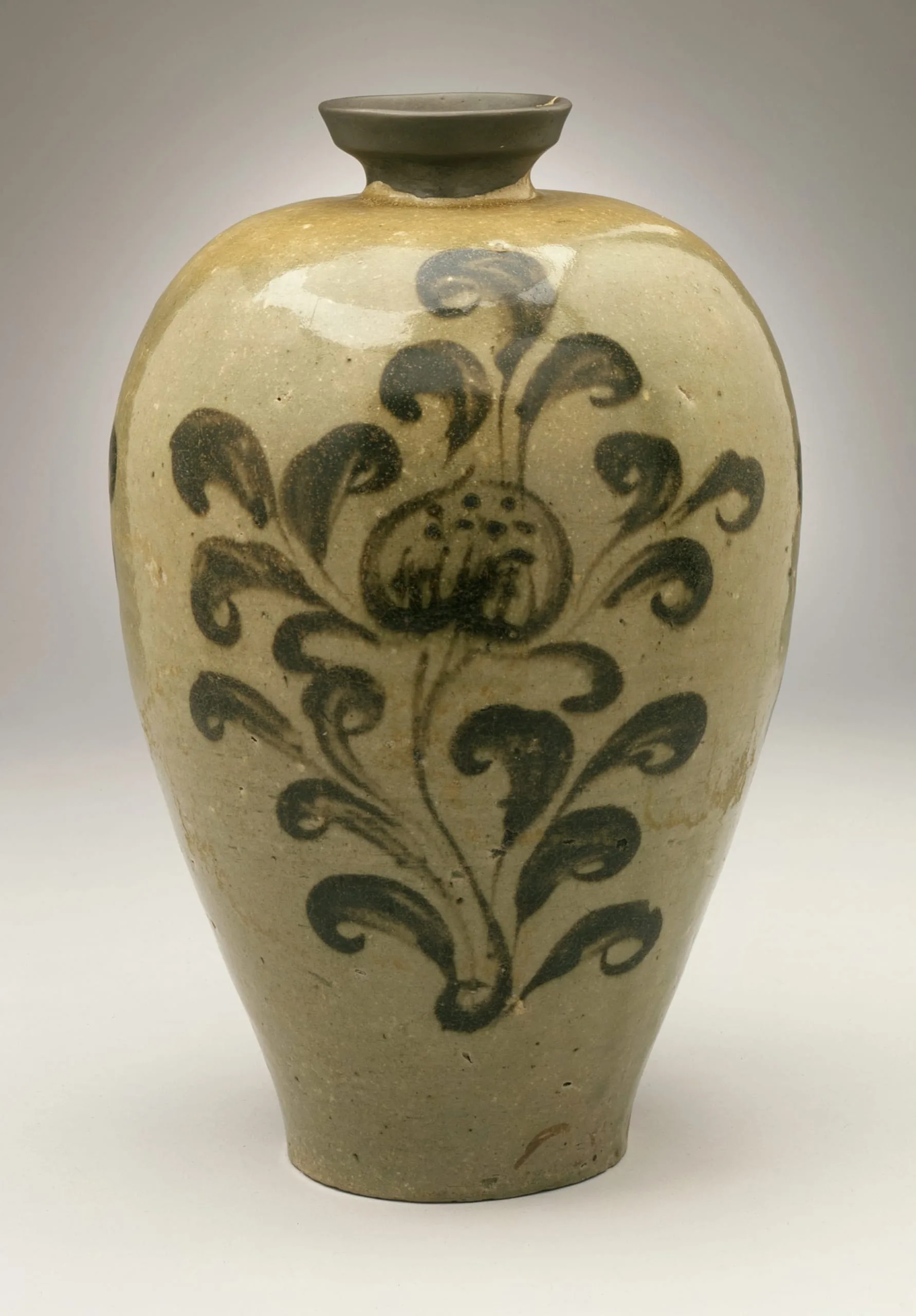 - Prunus Vase with Peony Spray Design in Underglaze Iron