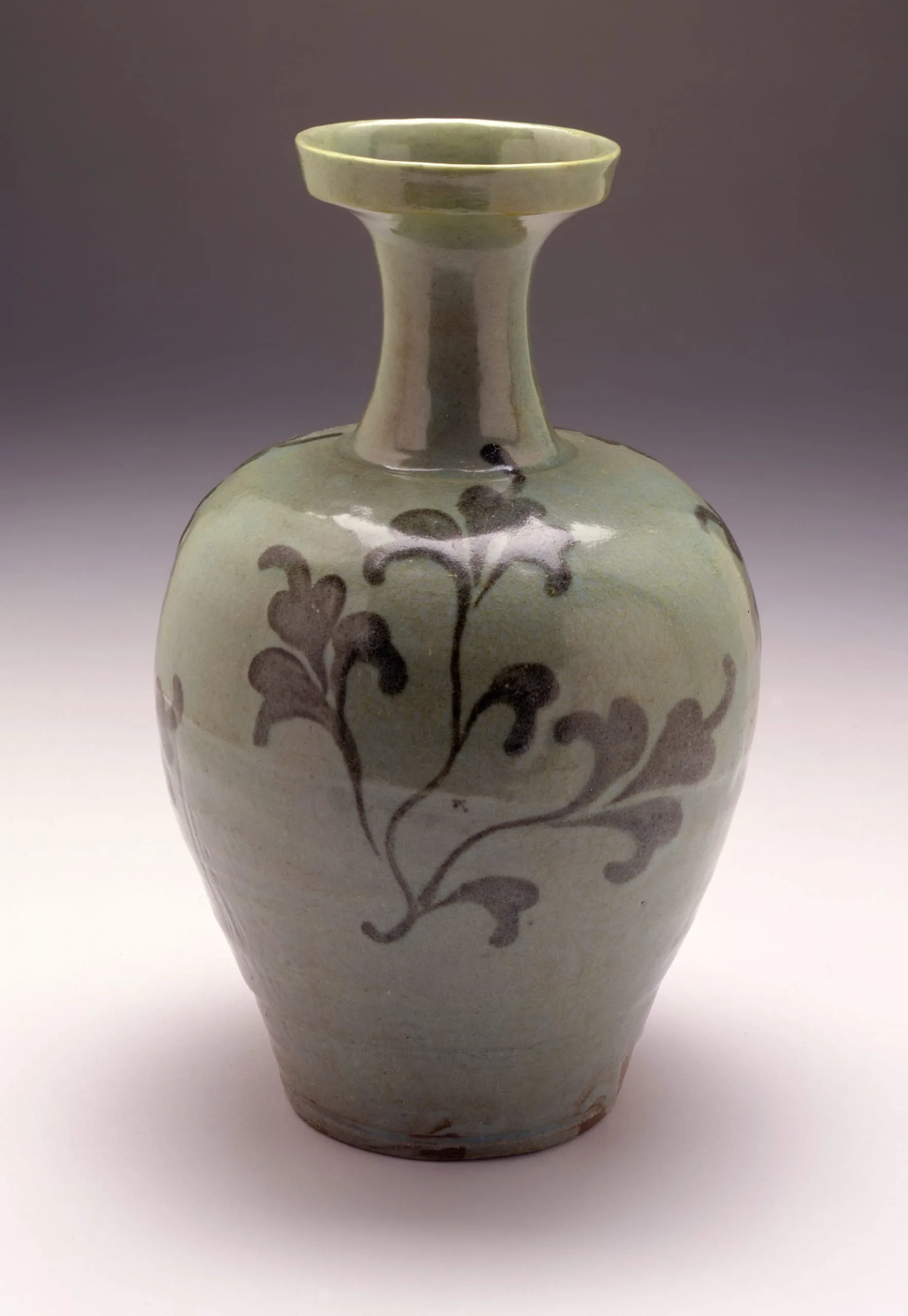 - Wheel-thrown stoneware with underglaze brown painted decoration and green glaze (cheongja cheolhwa ware)