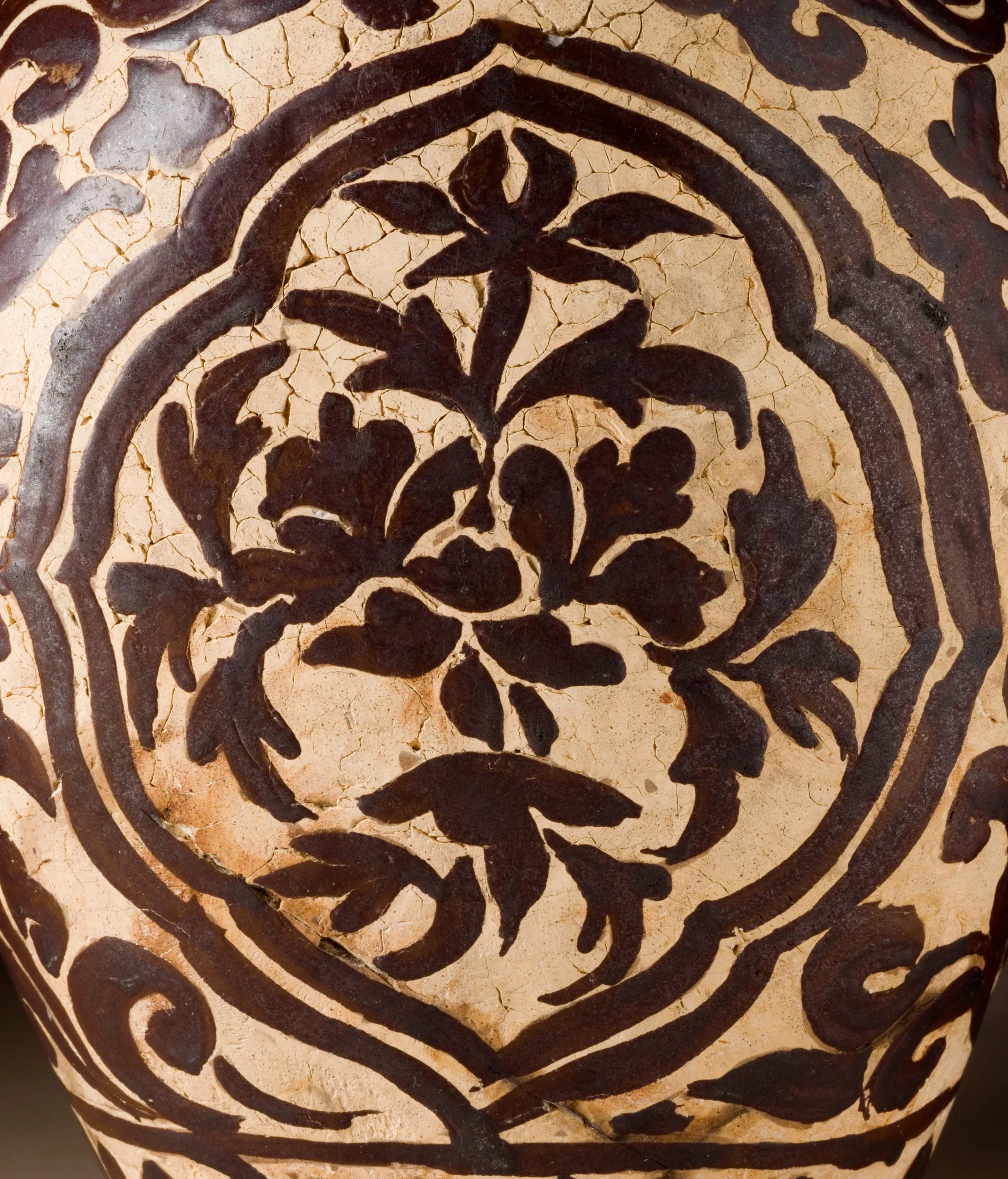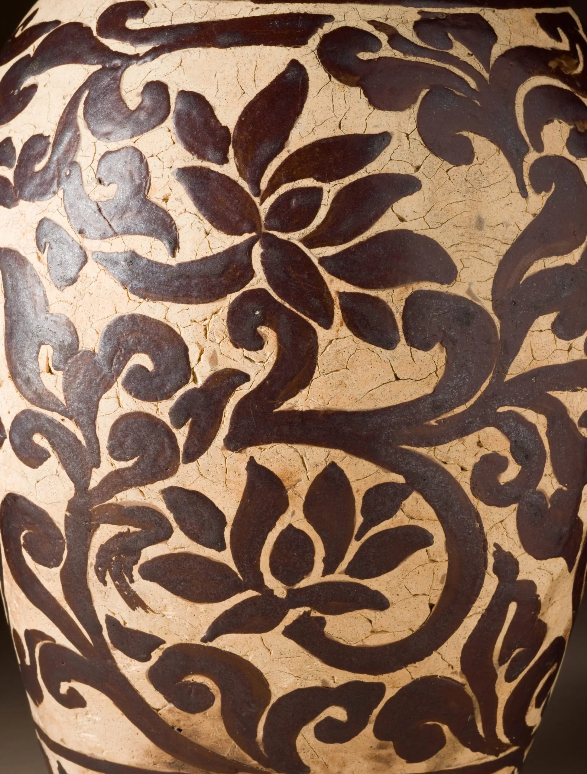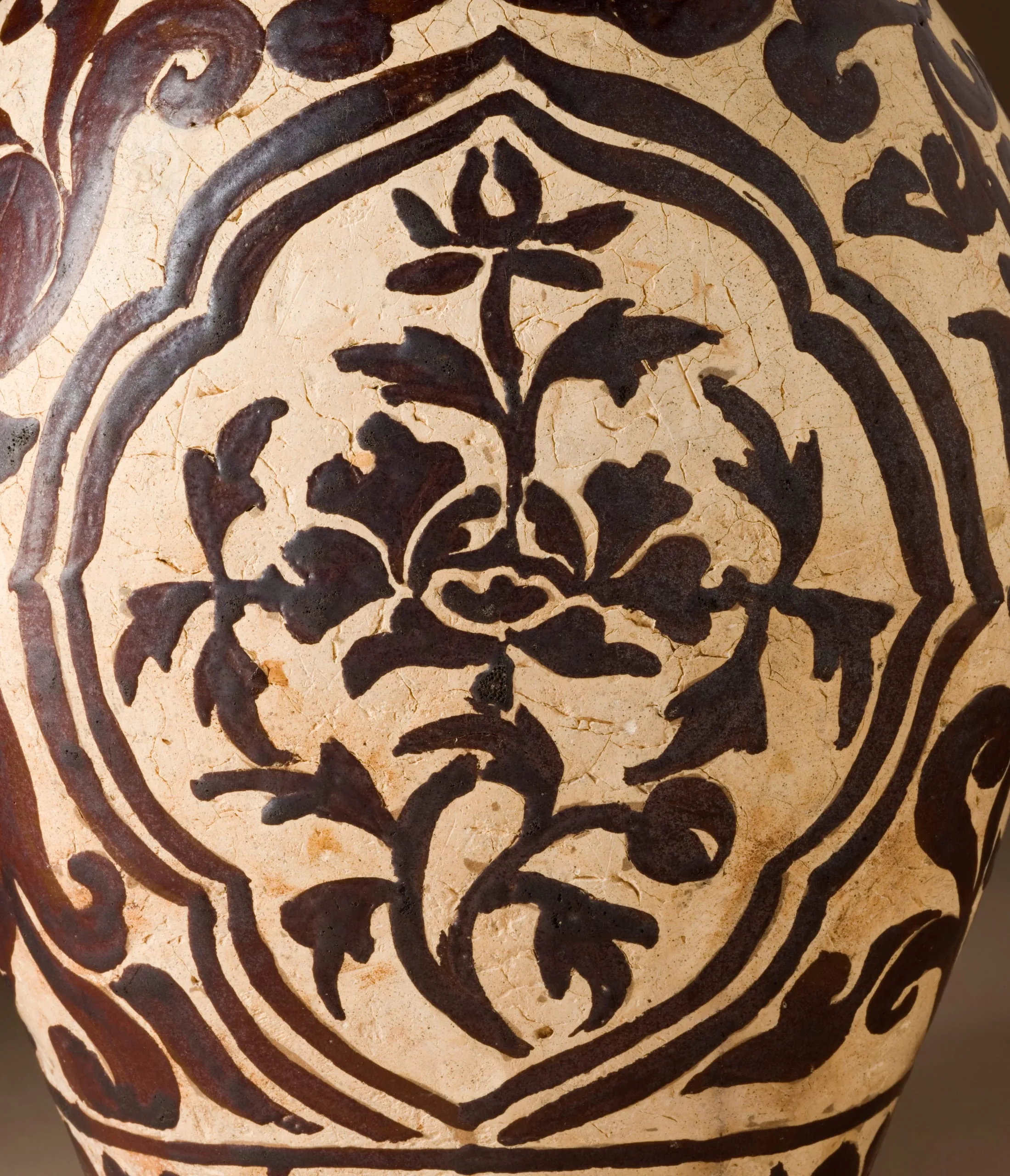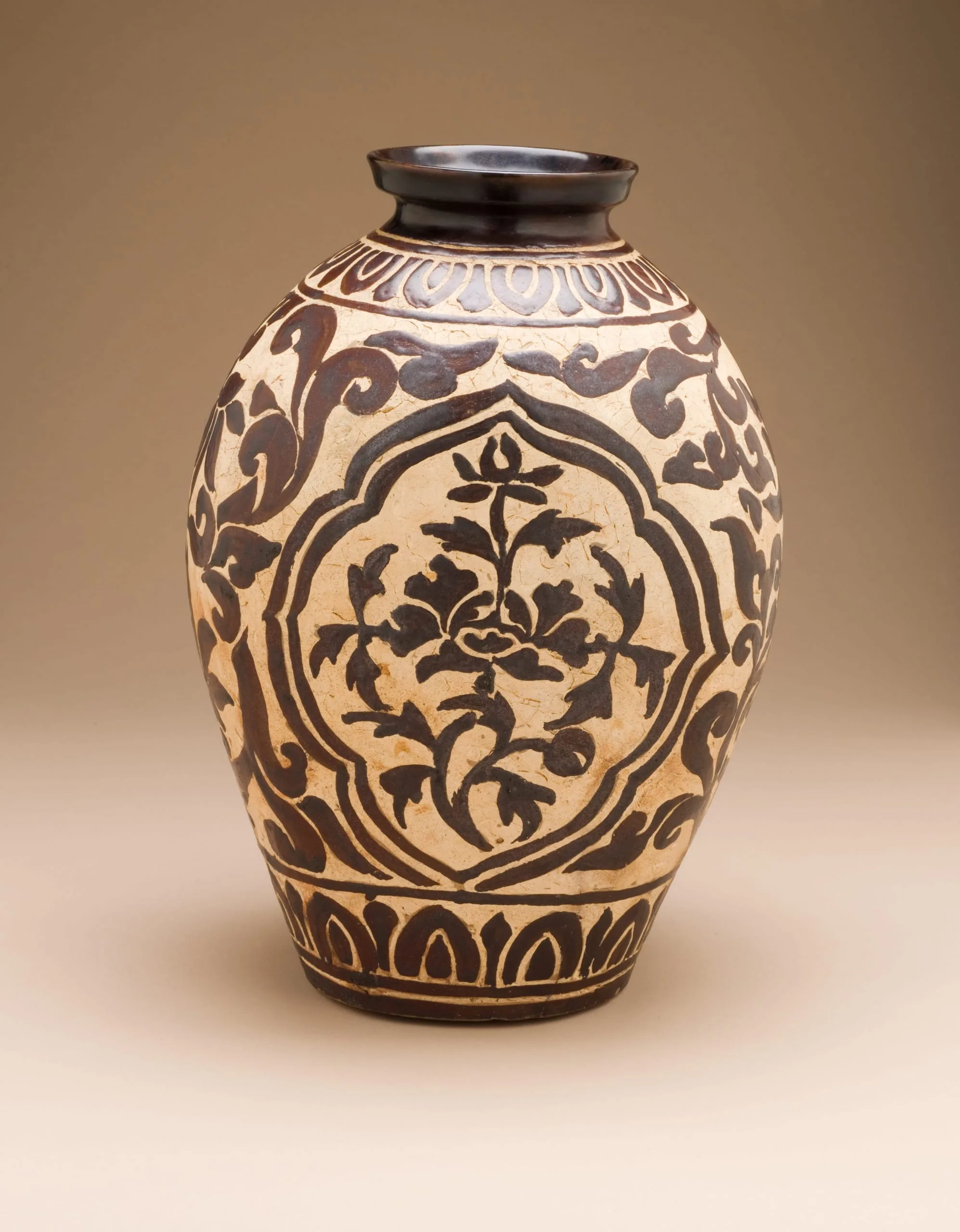 - Flattened Bottle with Lotus Scroll Design in Iron Glaze