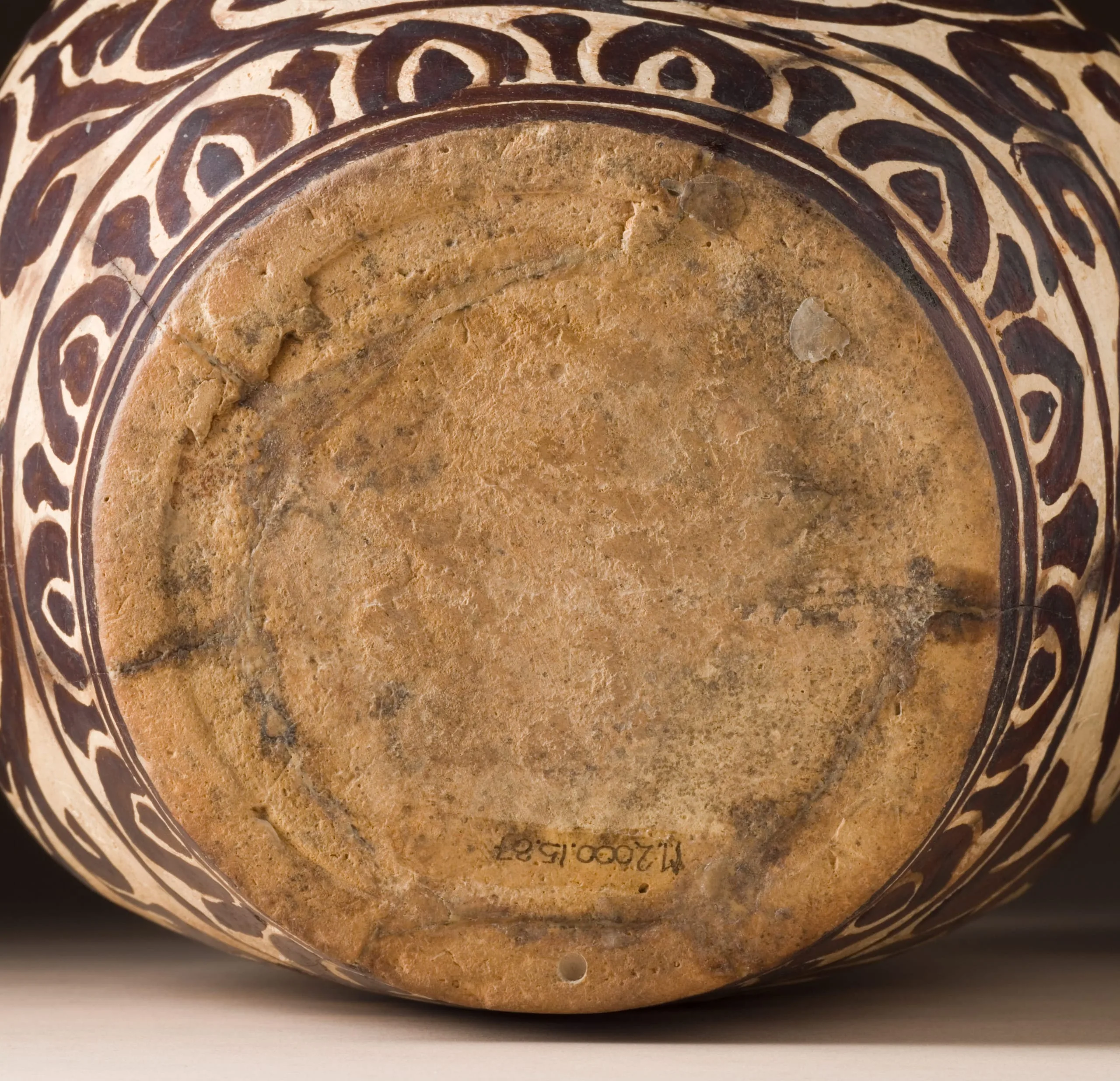 - Wheel-thrown and shaped stoneware with carved and slip-covered ground and glaze-painted decoration