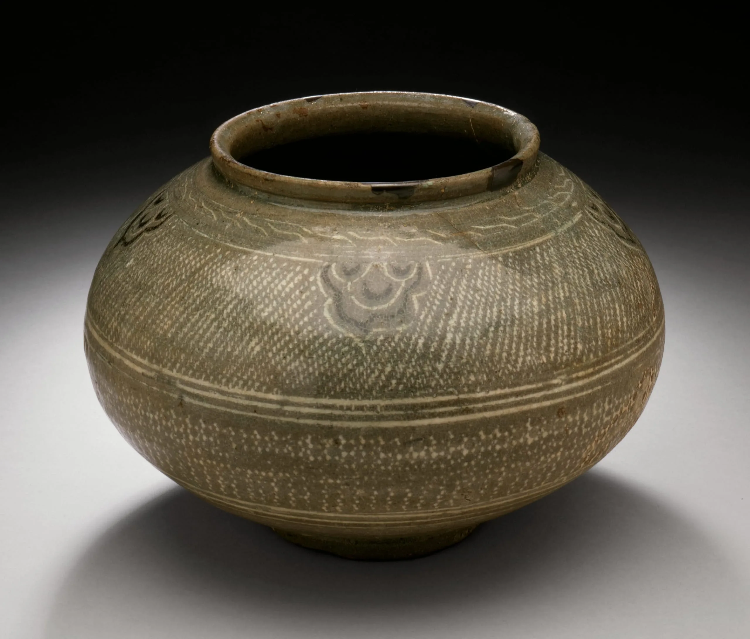 - Buncheong ware; Wheel-thrown stoneware with stamped and slip-filled decoration and pale green glaze