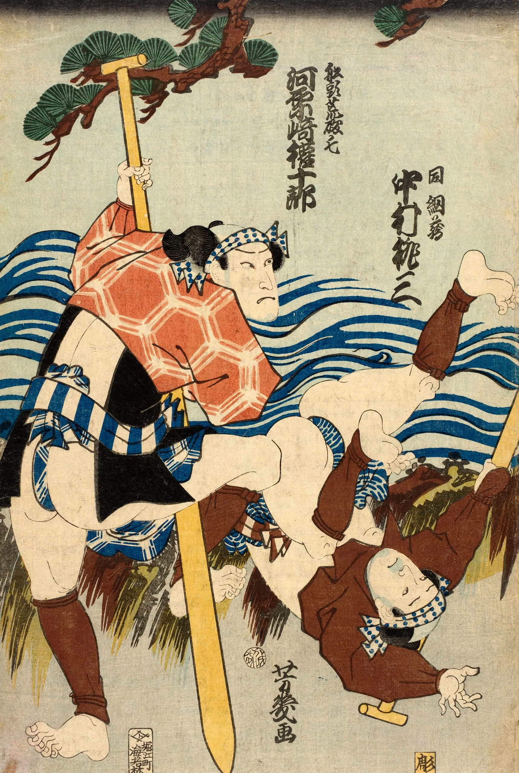 - The Actors Kawarazaki Gonjūrō and Nakamura Tōzō in the Play Hiragana Seisuiki